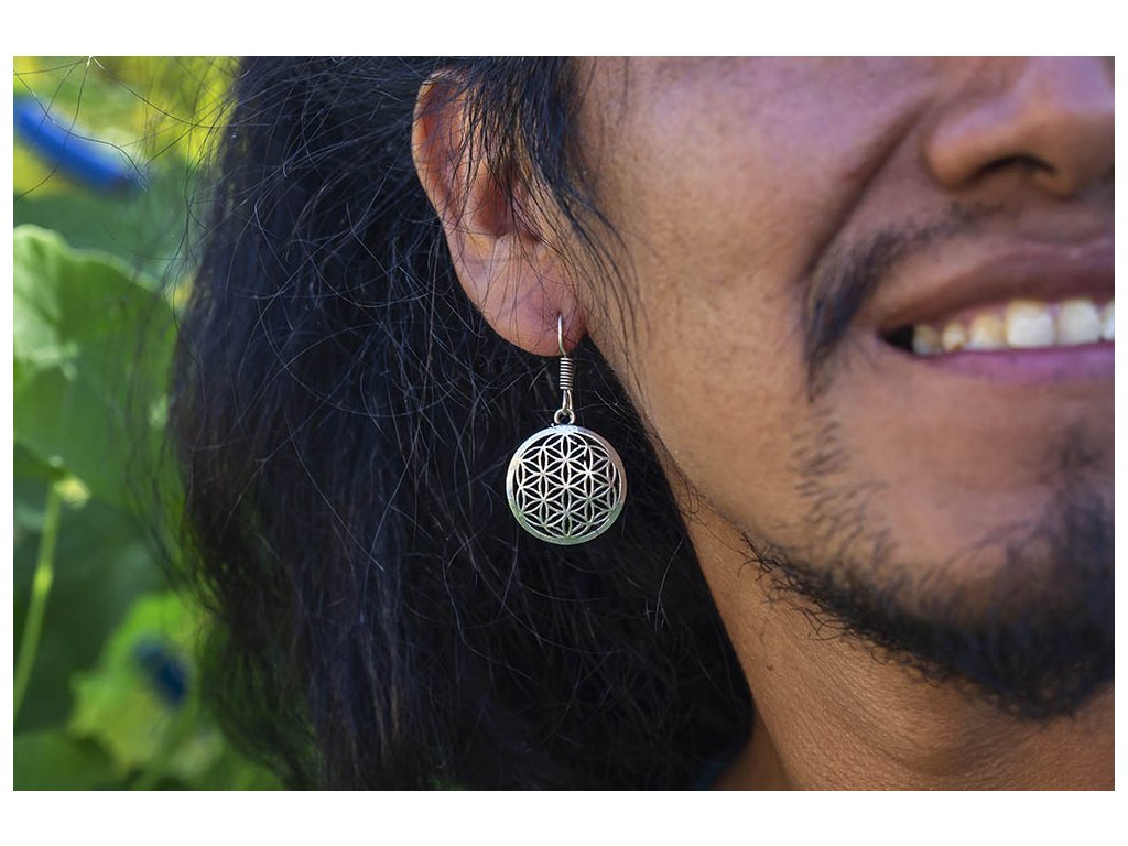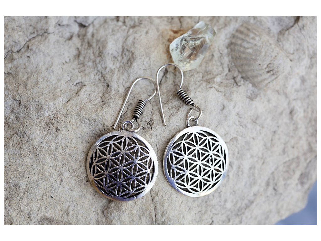 Náušnice květy života Krásné náušnice ve tvaru symbolu Květ života. Květ života – symbol posvátné geometrie je nalézán v různých místech mnoha kultur na celé planetě. Léčí tělo i duši, harmonizuje osobnost, dodává energii, pomáhá napojit se na božskou sílu, na vesmírné světlo. Materiál: Mosaz potažená alpakou Průměr: 23 mm Hmotnost jedné náušnice: 4 gDoplňkové parametry