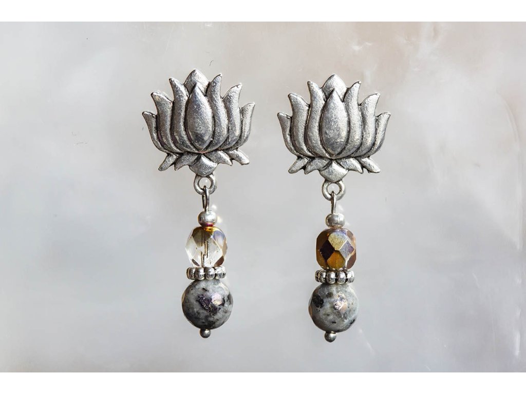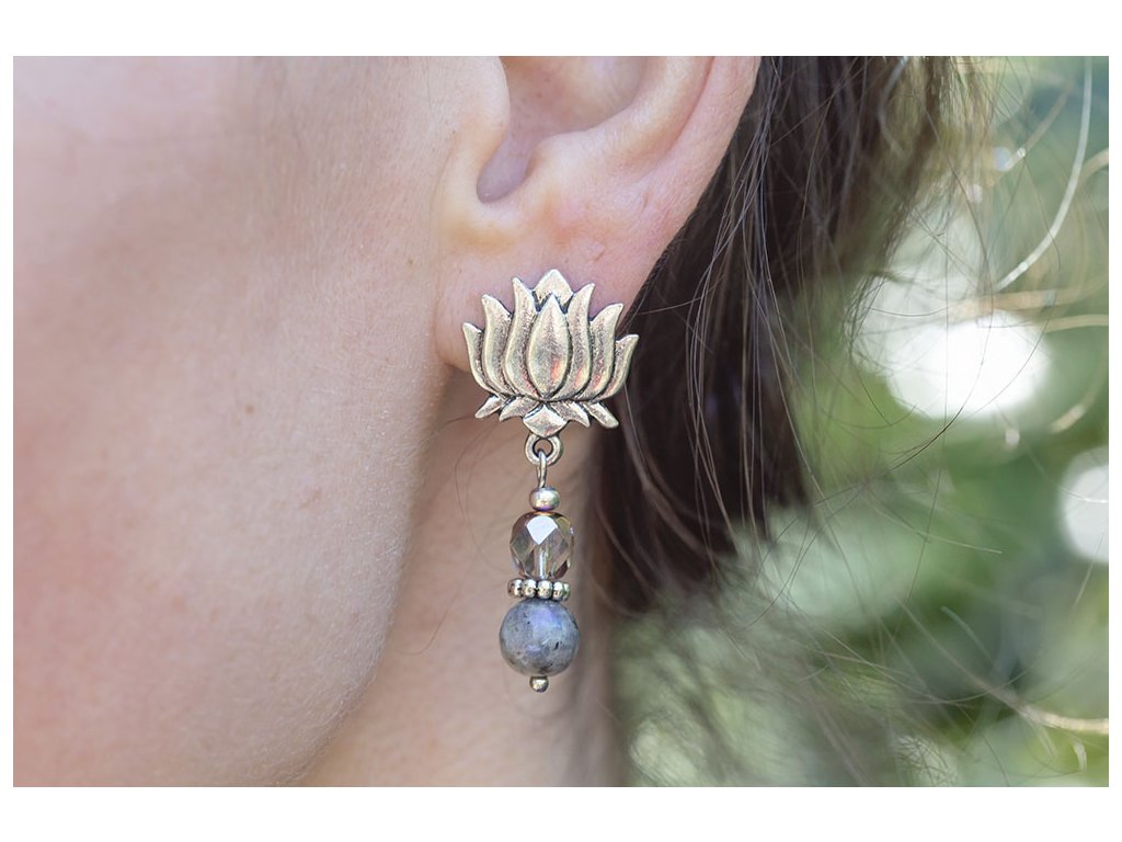 Náušnice lotosy s labradoritem Labradorit Lotosový květ