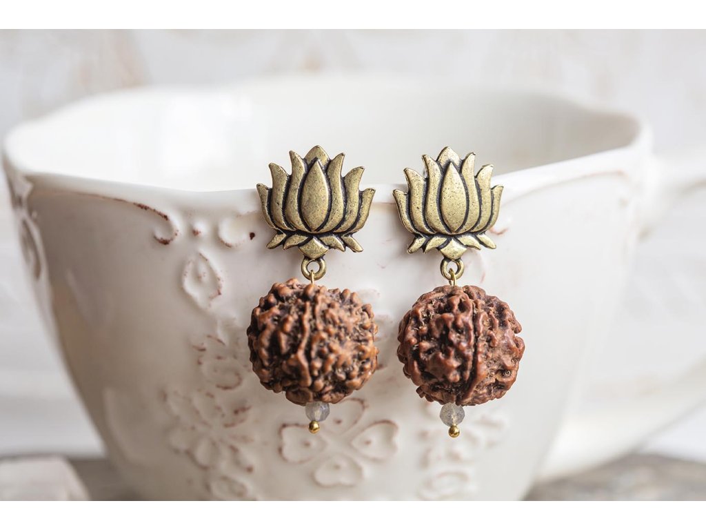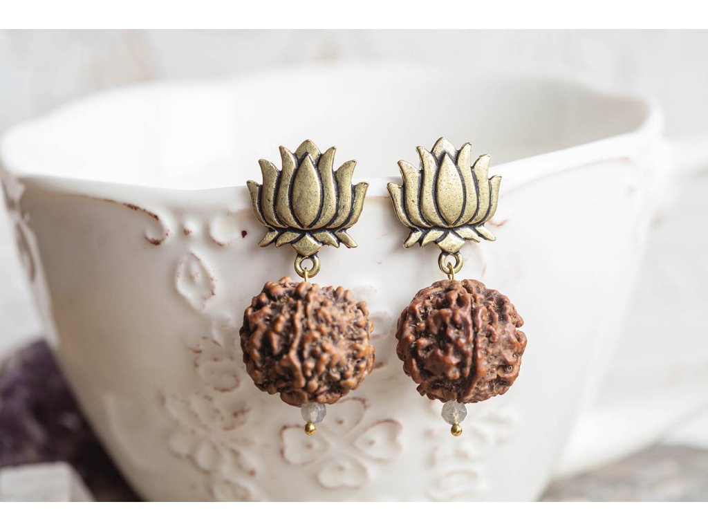 Náušnice lotosy s rudrakshou Labradorit Lotosový květ