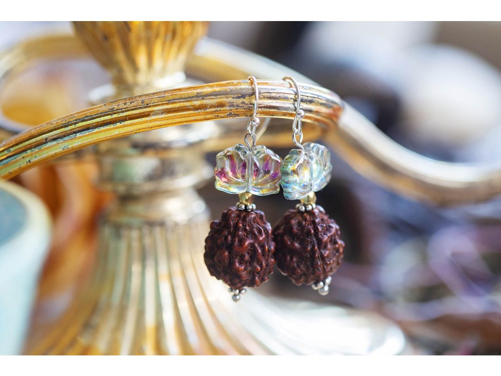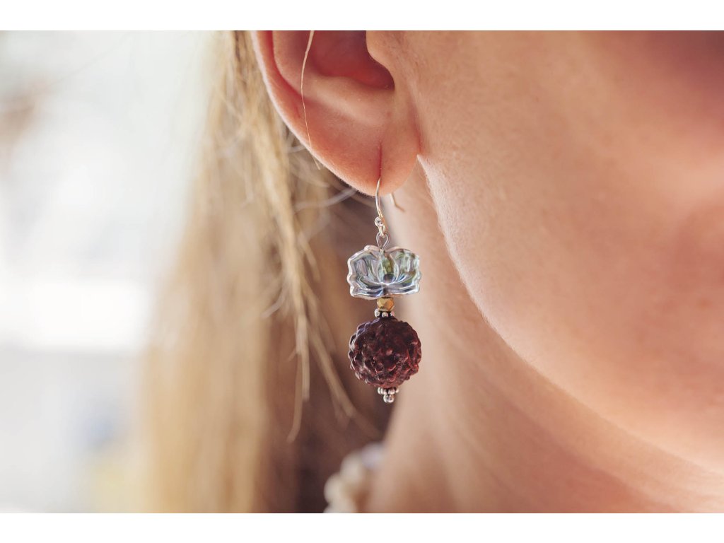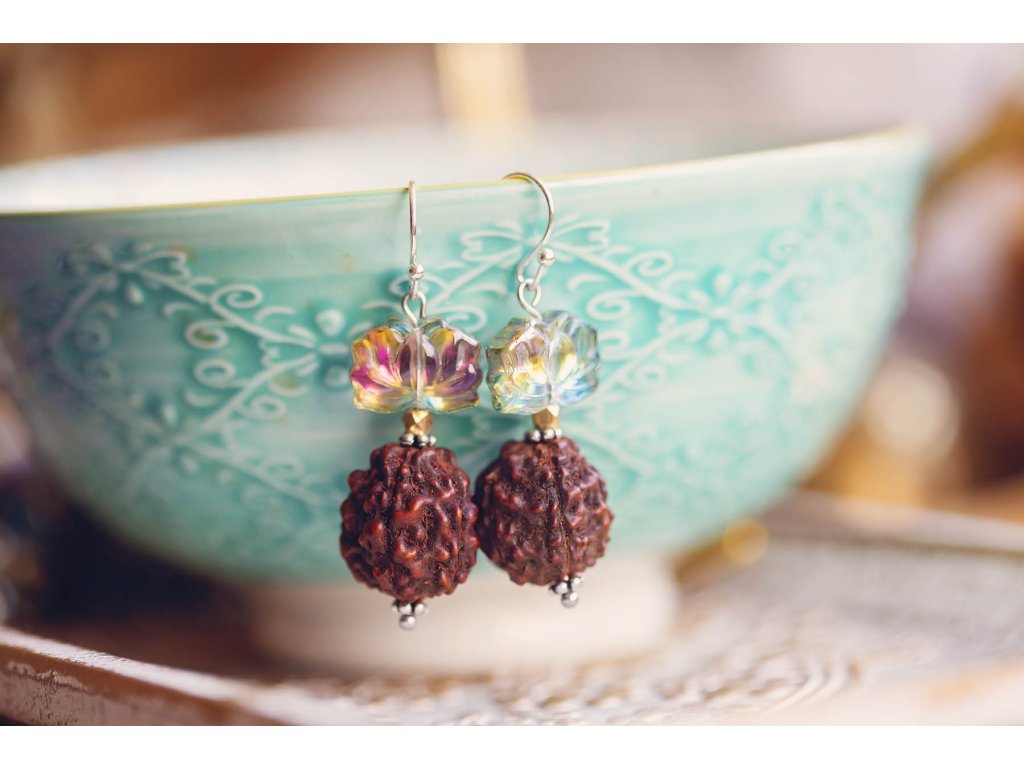 Náušnice Lotosy s rudrakshou Lotosový květ