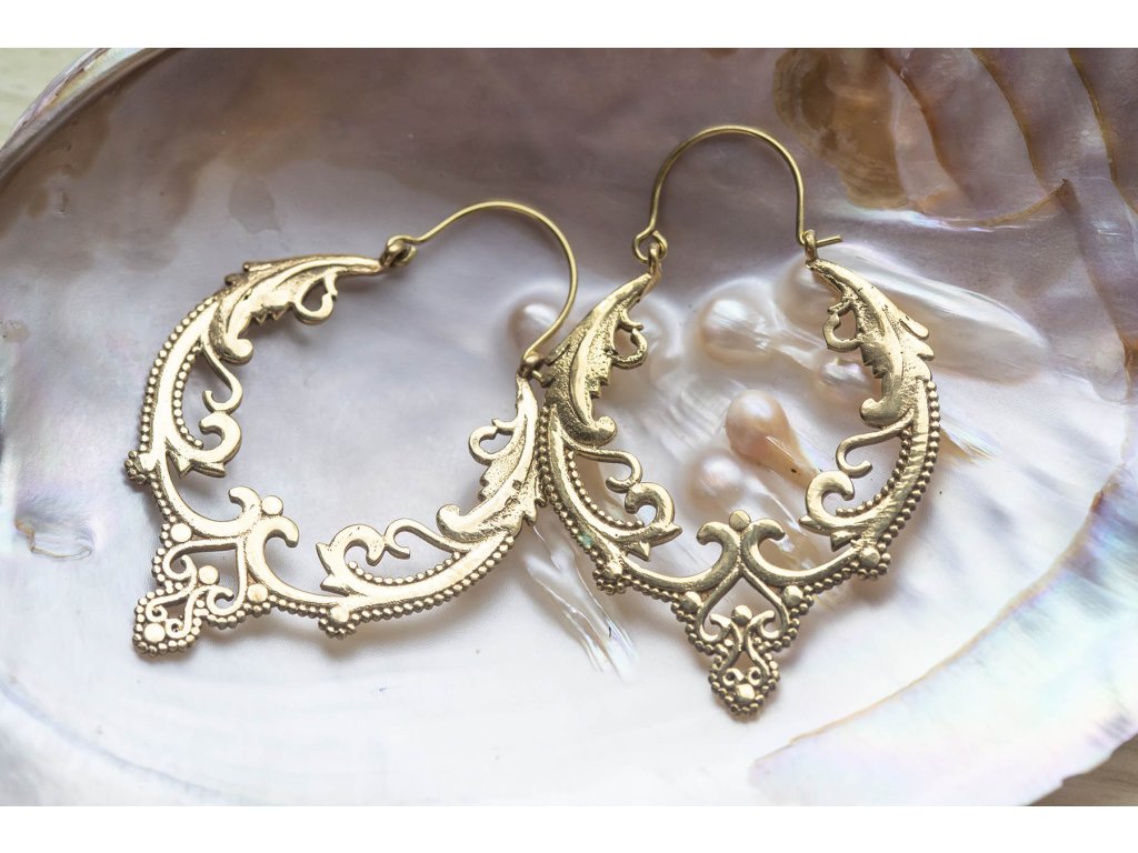 Náušnice ornament Překrásné mosazné náušnice náušnice zdobený ornament pro běžné nošení i slavnostní příležitost. Délka cca 6,5 cm Hmotnost jedné náušnice cca 8 gDoplňkové parametry