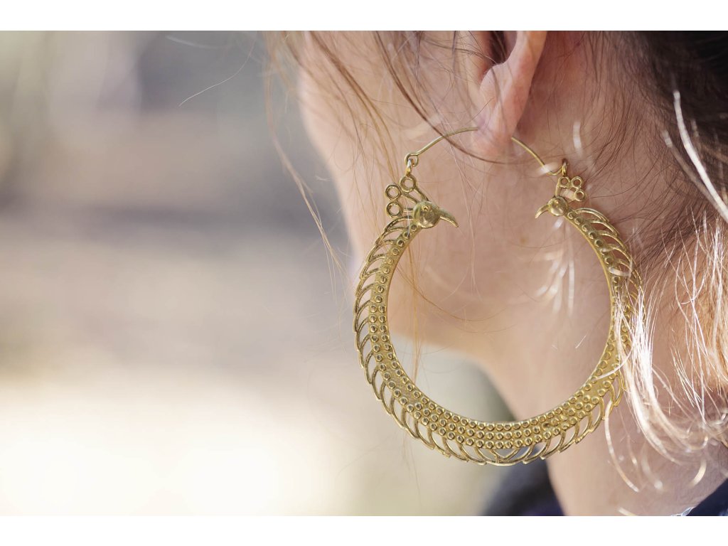 Náušnice pávi Tyto velké zdobené mosazné náušnice pávi, jsou výrazným šperkem a budete s nimi rozhodně nepřehlédnutelná. Délka cca 8 cm Hmotnost jedné náušnice cca 14 gDoplňkové parametry