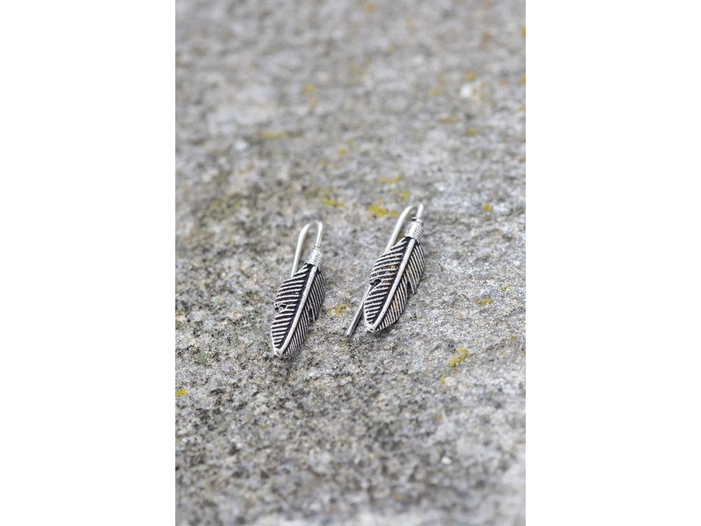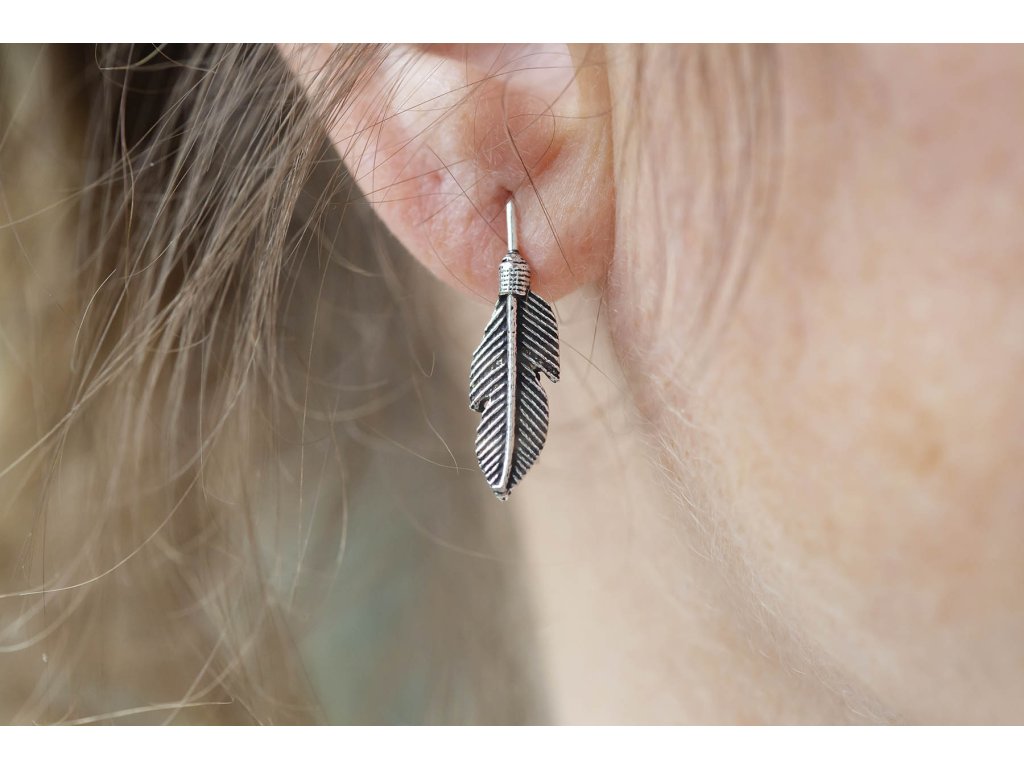 Náušnice peříčka Jemné náušnice z bílého kovu ve tvaru peříčka. Délka cca 2,5 cm Hmotnost jedné náušnice 0,5 g