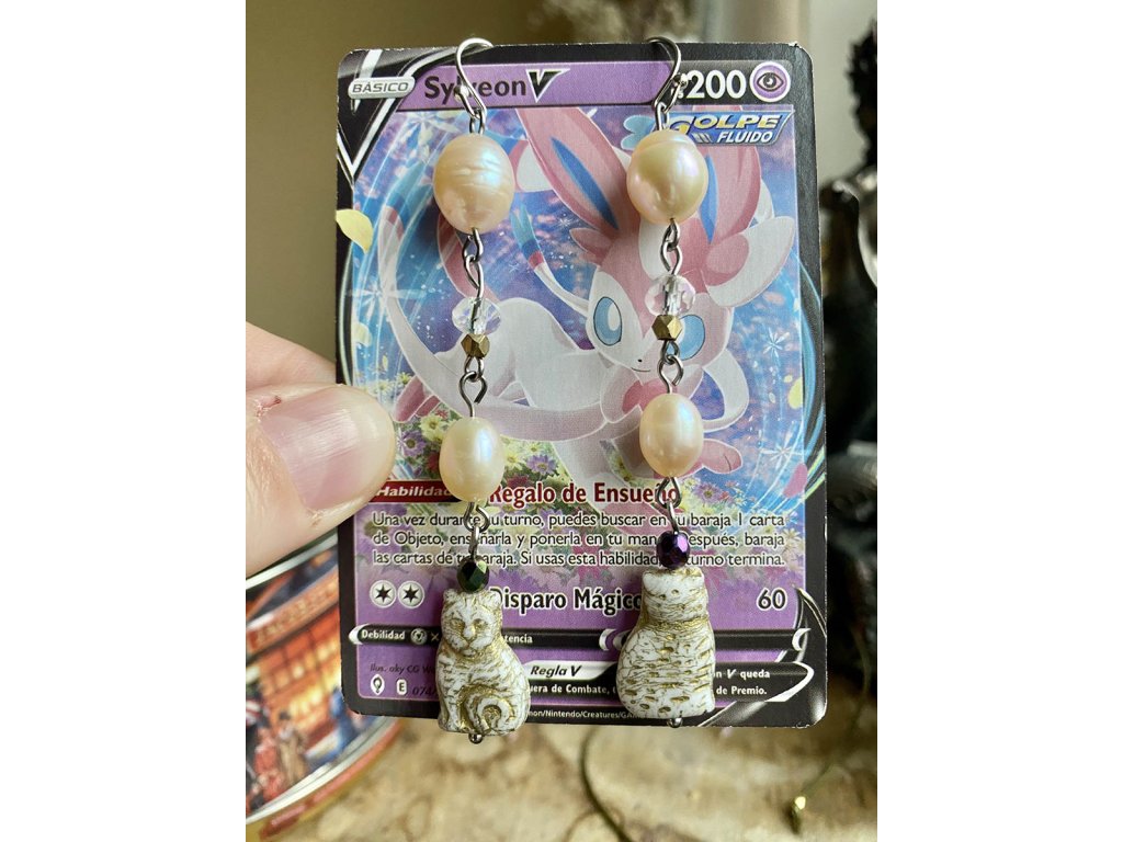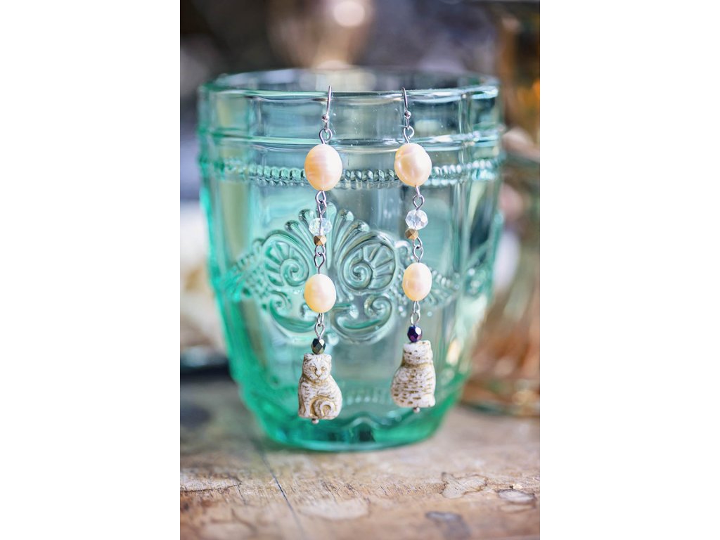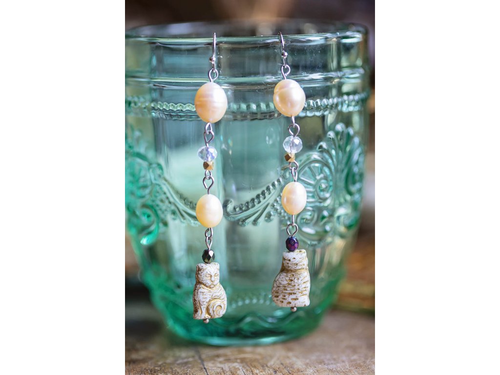 Náušnice perly a kočky Originální náušnice perly a kočky ve stylu harajuku. Jsou tvořeny z říčních perel, pokovených hematitů a korálků od českých sklářů. Hematit je zvláště účinný při uzemnění a jako ochranný kámen. Uvádí do rovnováhy tělo, mysl i ducha. Nese v sobě silný element jang a zajišťuje rovnováhu meridiánů, čímž napravuje nevyváženost prvku jin. O hematitu se píše, že působí zvlášť blahodárně v situacích spojených s právem a zákony. Silně působí také v duševní rovině. Pomáhá plachým osobám zvyšovat sebevědomí a podporuje schopnost přežít. Dodává větší vůli k životu a rozvíjí spolehlivost. Zvyšuje rovněž důvěryhodnost. Tento kámen odstraňuje omezení, která si jeho majitel v minulosti sám stanovil, a napomáhá rozvoji osobnosti. Účinně asistuje při překonávání různých nutkání a návyků. Hematit obrací pozornost k nenaplněným touhám představujícím hnací motor lidského života. Perly vnášejí do života rovnováhu, racionalitu a zabraňují negativním vlivům. Perla vám bude sloužit jako osobní ochranný amulet, posílí vaší intuici a vůli dosáhnout vytyčených cílů. Jsou také symbolem moci, hojnosti a bohatství, které ale může mít, jak víme, mnohou podobu... Délka cca 8,5 cm Hmotnost jedné náušnice cca 5 gDoplňkové parametry