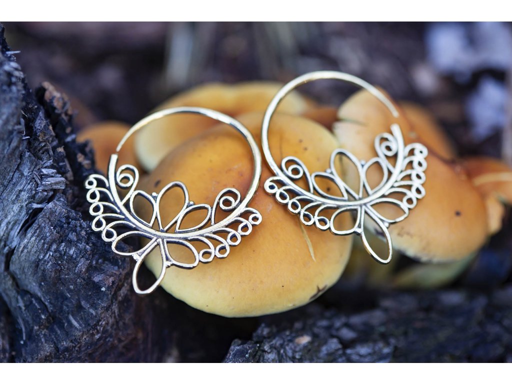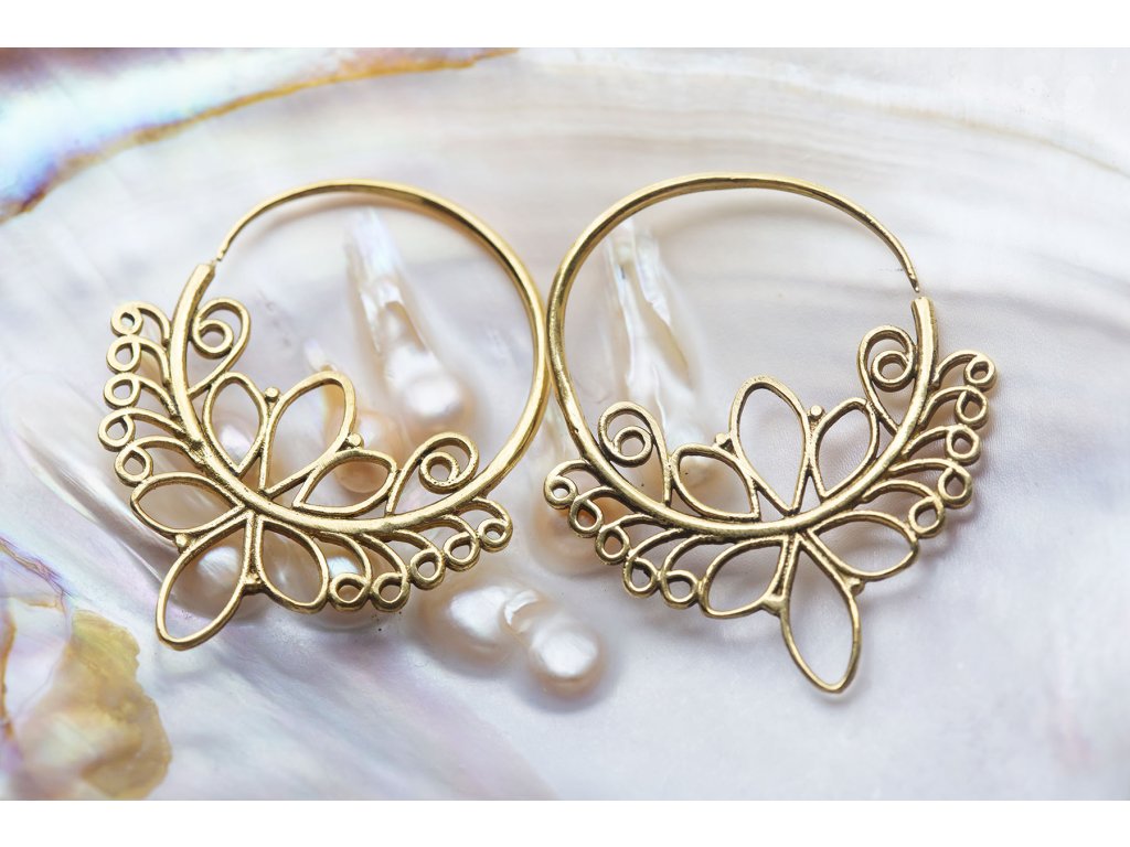 Náušnice pro větší dírky Zdobené mosazné náušnice pro větší dírky. Délka cca 4,5 cm Hmotnost jedné náušnice cca 4 g