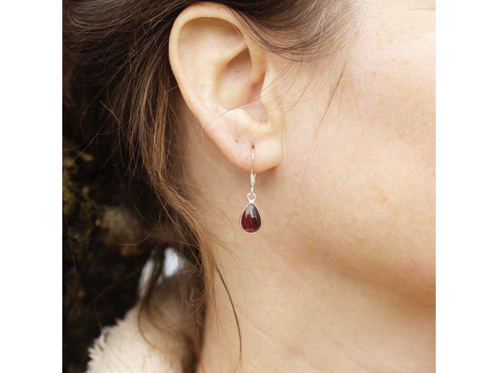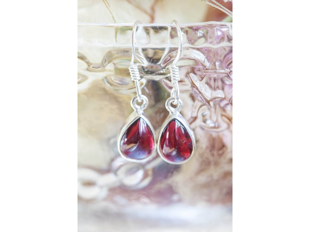 Náušnice s granátem Jemné, moc hezké stříbrné náušnice s granátem ve tvaru kapky. Další šperky s granátem najdete zde. Granát dodává životní energii, podněcuje k činnosti i sexuální aktivitě, podporuje nadšení, vytrvalost, představivost, vůli a sebedůvěru, zmírňuje deprese. Napomáhá k regeneraci organismu a buněk, podporuje tvorbu červených krvinek. Povzbuzuje vitalitu, reguluje krevní tlak a oběh, posiluje srdce, zastavuje krvácení. Upravuje příčiny hormonálních a sexuálních poruch, působí jako sexuální stimulant a pomáhá léčit impotenci způsobenou psychickými problémy. Více o granátu se dočtete na našem blogu. Délka cca 2,7 cm Rozměry kamene cca 0,7 x 1 cm Hmotnost jedné náušnice cca 1,5 g Materiál kov: Stříbro Ag 925/1000Doplňkové parametry