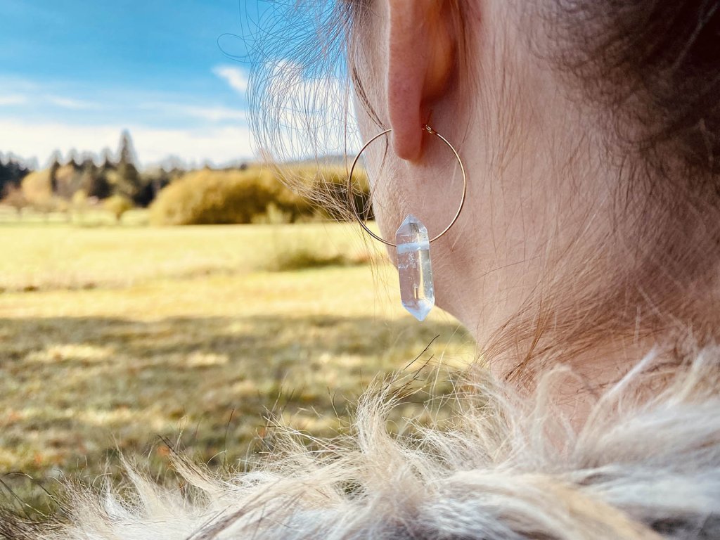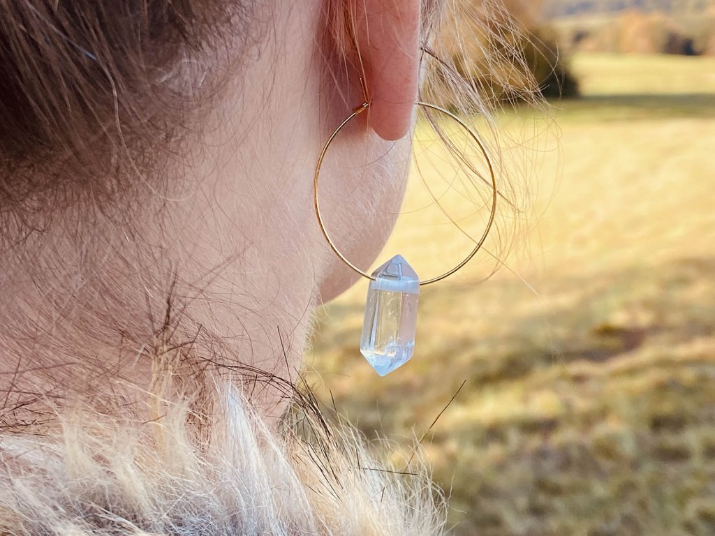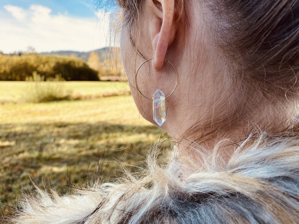 Náušnice s křišťálem Jemné odlesky křišťálu ve spojení s tenkým kroužkem. Tyto náušnice musíte mít. Jsou originální a velmi elegantní. Na výběr máme velký kroužek z mosazi nebo malý, který je pozlacený 18k zlatem. Křišťál je jedinečný kámen, který uvádí energii svého nositele do harmonie, zesiluje jí a tím povzbuzuje psychiku, jasnozřivost a samostatnost a sebezdokonalení. Ochraňuje před zlými a negativními silami. Harmonizuje, čistí a chrání auru a tím zajišťuje klidný spánek. Je vhodný pro meditace a magické účely. Velký kroužek: Průměr cca 3,5 cm Malý kroužek: Průměr cca 3 cm Hmotnost jedné náušnice cca 3 gBuďte první, kdo napíše příspěvek k této položce.