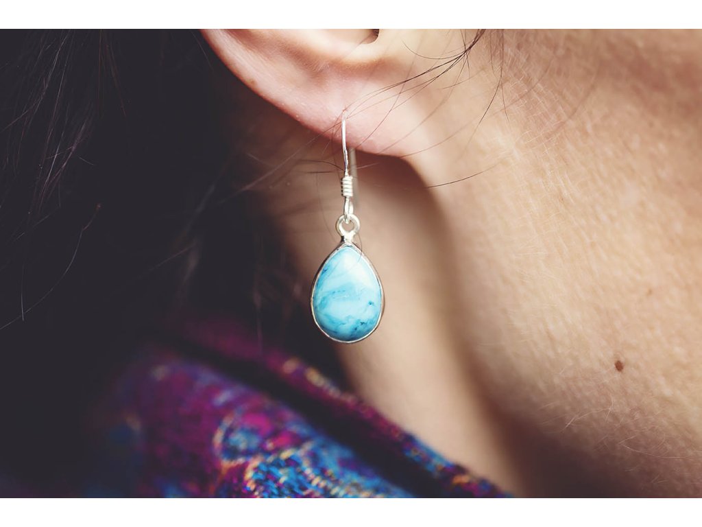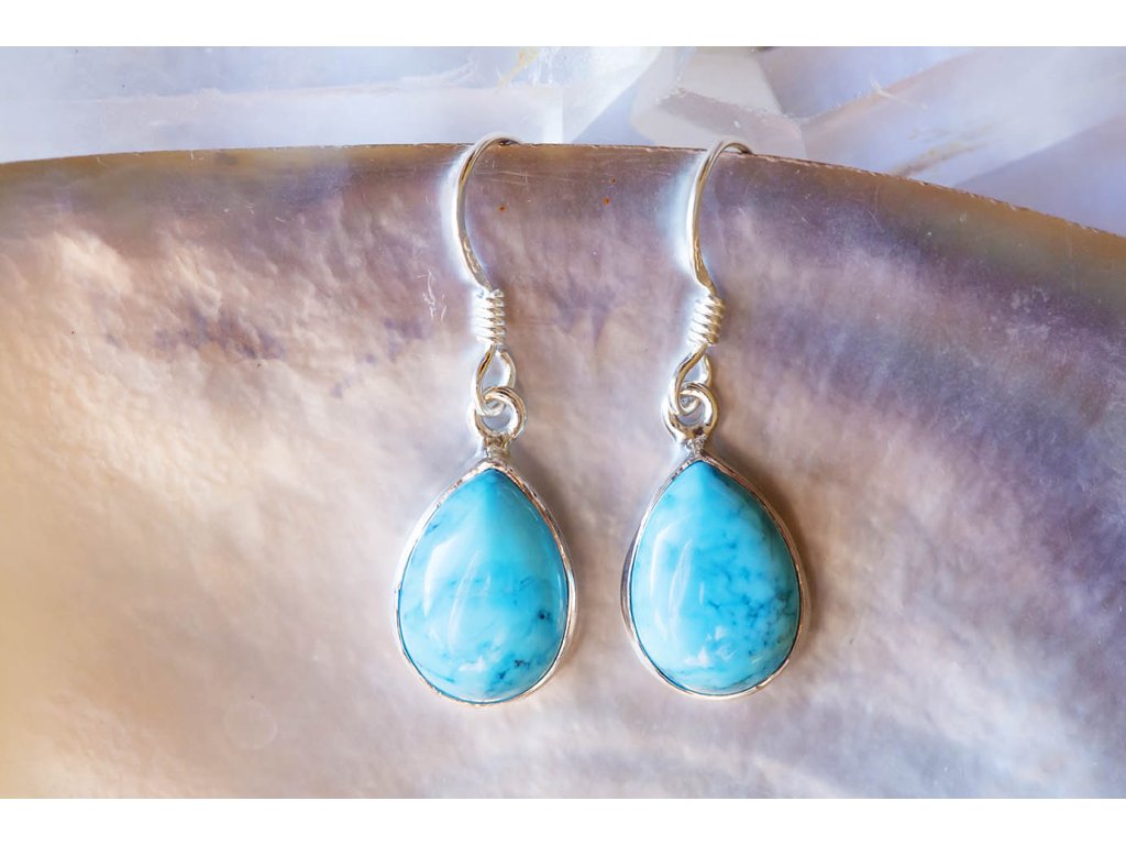 Náušnice s tyrkysy Krásné jednoduché stříbrné náušnice ve tvaru velké kapky s tyrkysem. K náušnicím s tyrkysem se krásně hodí prsten s tyrkysem. Najdete ho zde. Tyrkys slouží jeho nositeli k tříbení a vyjadřování vlastních myšlenek, zesiluje intuici, vyrovnanost, podporuje úspěch. Také chrání auru a pohlcuje škodlivé vlivy a zahání zlé sny. Posiluje pozitivní energii. Ve vztahové rovině přináší štěstí a klid. Délka i se závěsem cca 32 mm Hmotnost jedné náušnice cca 2g Materiál: Ag 925/1000Doplňkové parametry