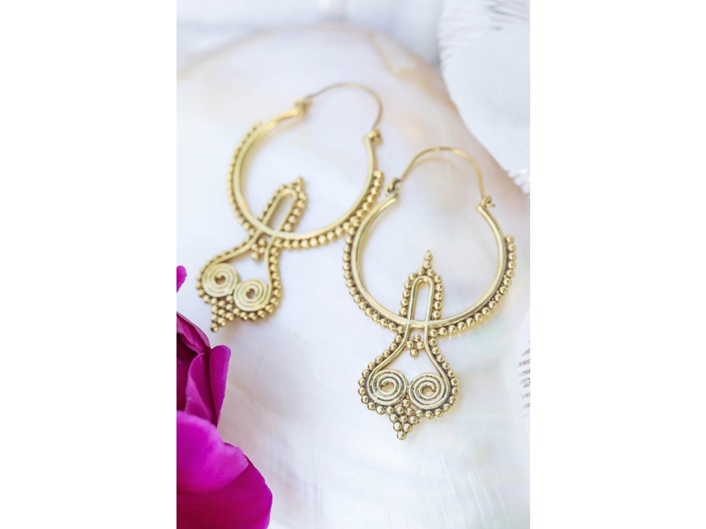 Náušnice sovy Mosazné náušnice se stylizovanýma sovíma očima. Délka cca 6,5 cm Hmotnost cca 7 g
