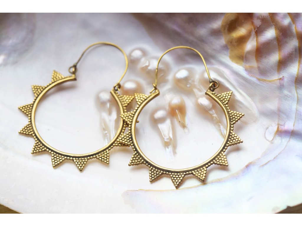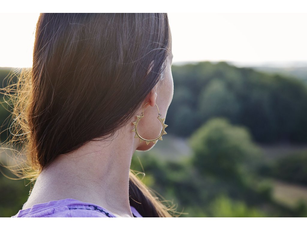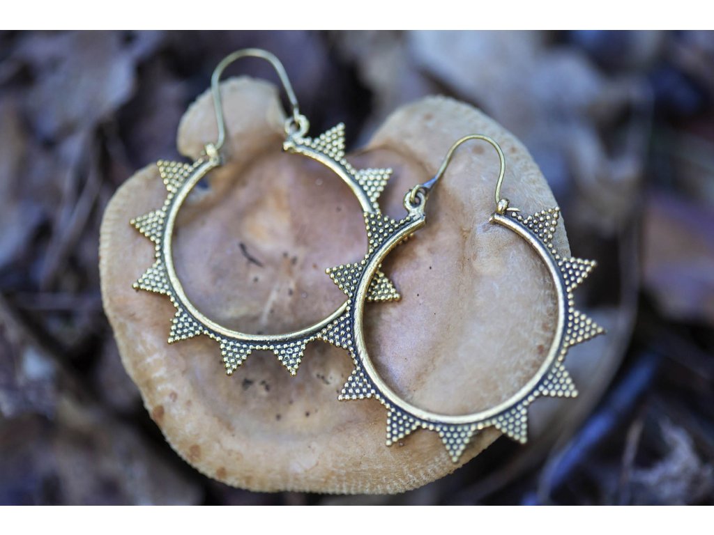 Náušnice špičky Mosazné kruhové náušnice špičky jsou jednoduché a přitom efektní. Průměr cca 4,5 cm Hmotnost jedné náušnice cca 4 g