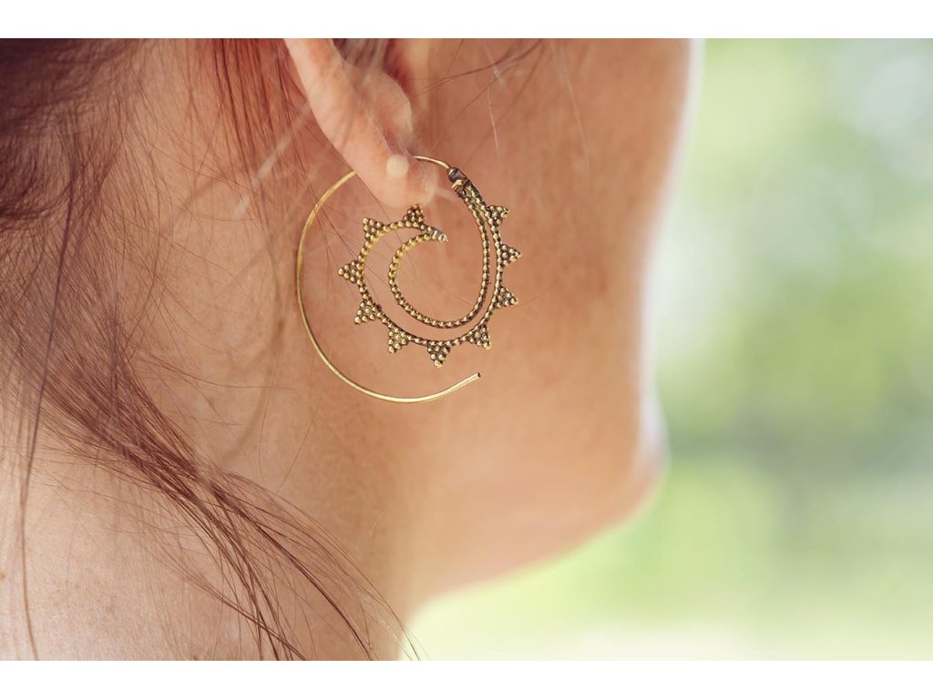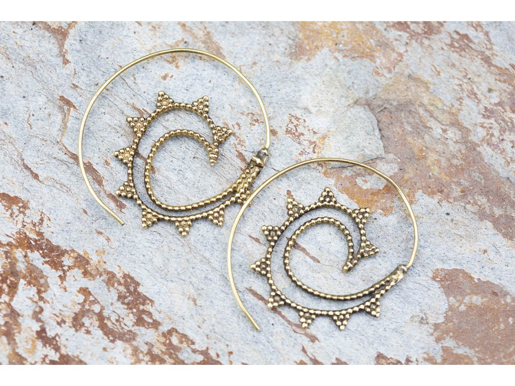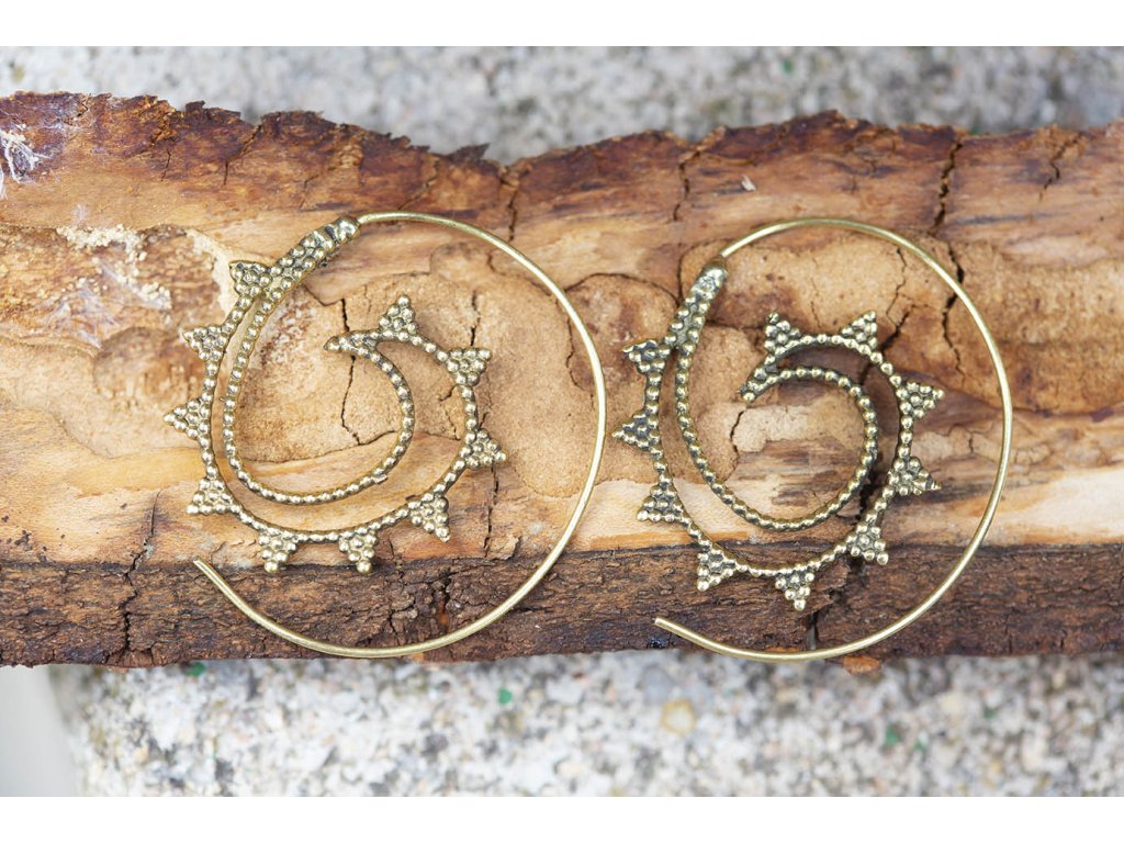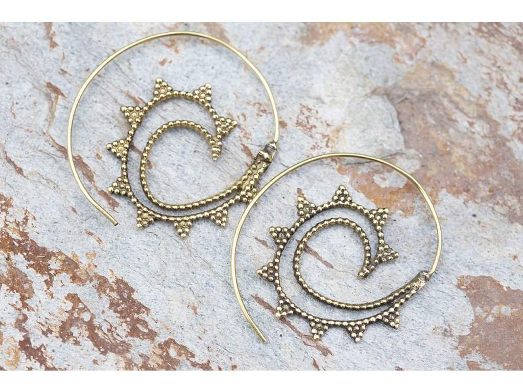 Náušnice stegosaurus Mosazné náušnice se stegosauřími ostny. Průměr cca 3,5 cm Hmotnost jedné náušnice cca 2,5 g