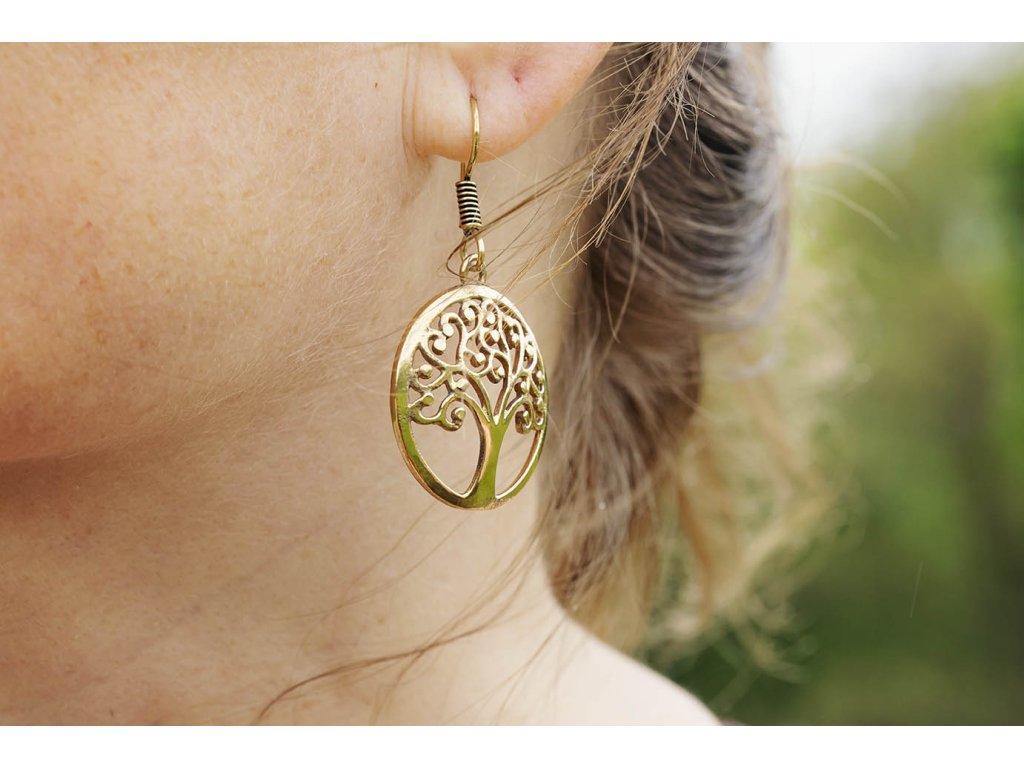 Náušnice strom Překrásné mosazné náušnice stromy v kruhu. Vhodné pro přírodu milující bytost, elfku, vílu a přírodní bohyni. Délka i se závěsem cca 5 cm Hmotnost jedné náušnice cca 4 gDoplňkové parametry