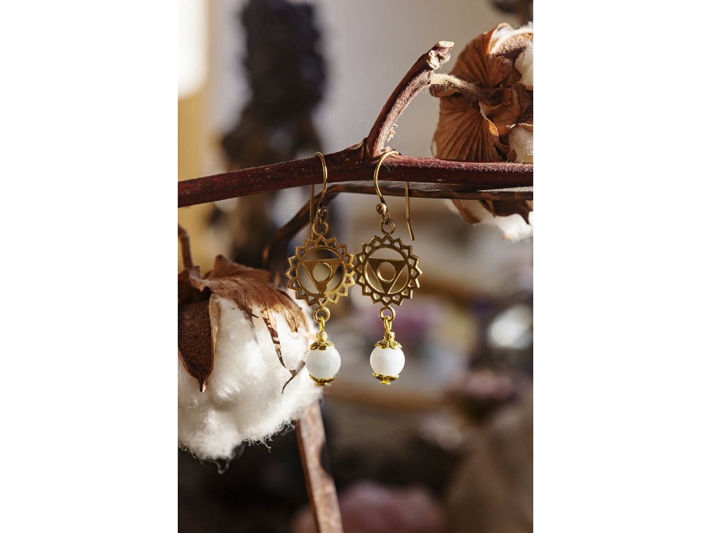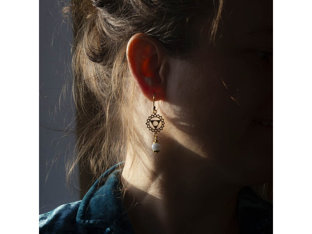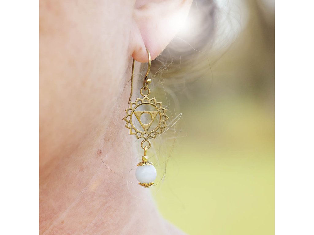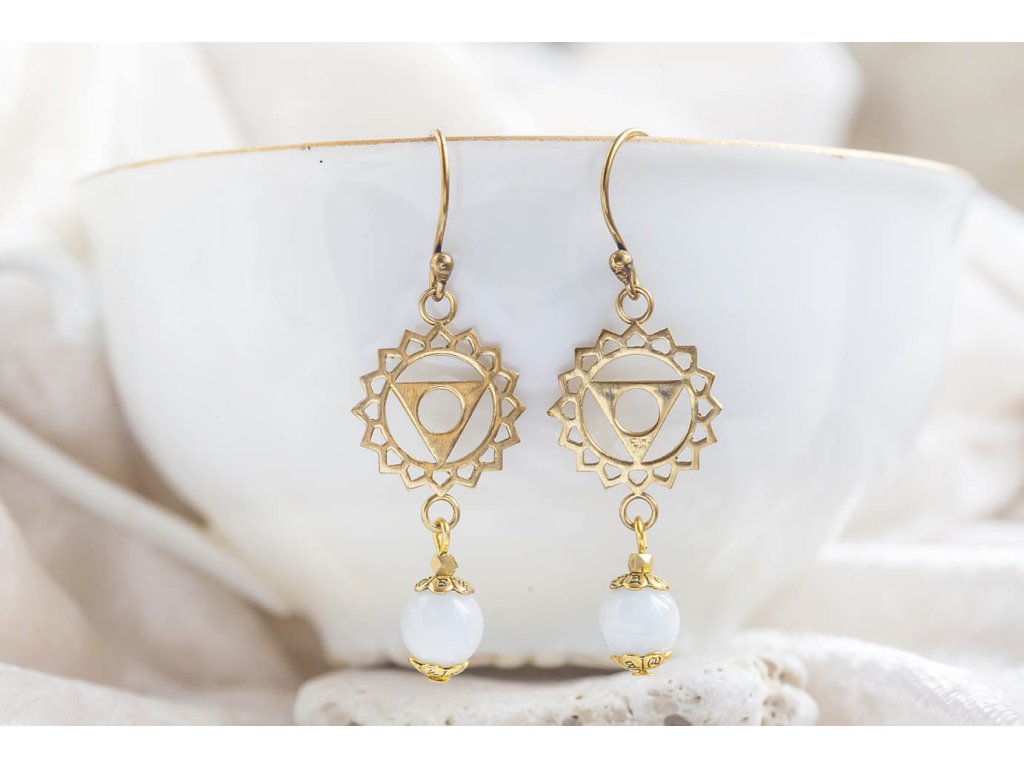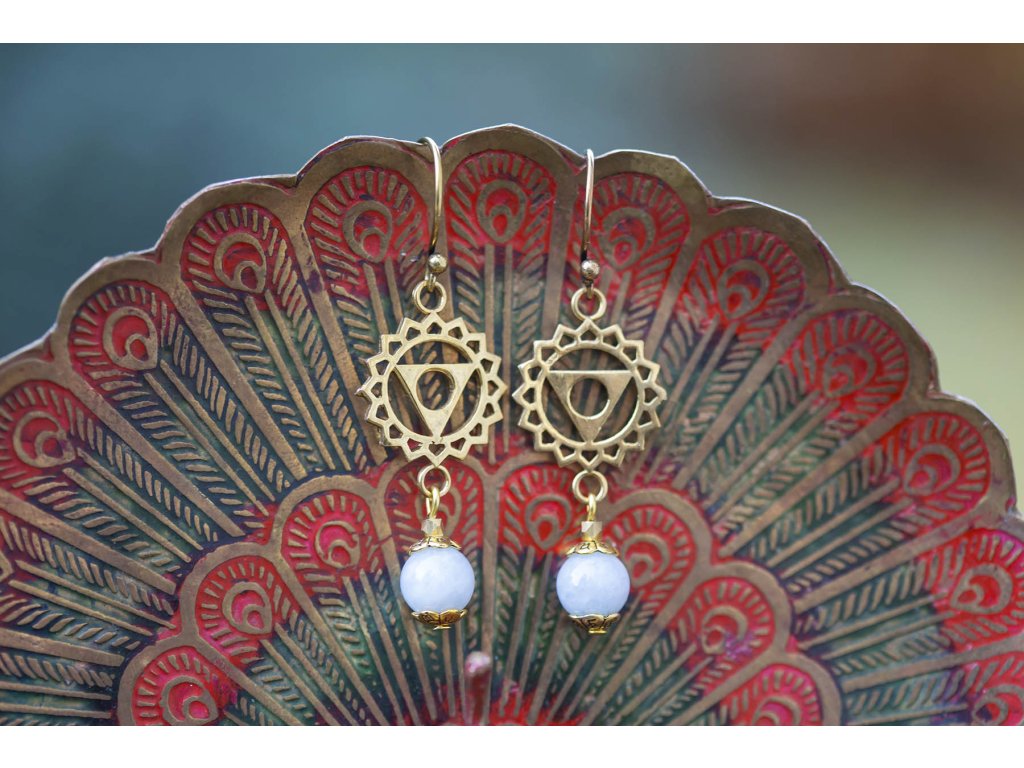 Náušnice Višuddhi Mosazný znak pro 5.čakru a drahocenný akvamarín tvoří tyto nádherné náušnice Višuddhi. Pohladí vaše oko i vaši duši a posílí vaši krční čakru. Akvamarín barvy moře je kamenem dávných mořských bohyní. Odpradávna s ním pracují mystikové, vizionáři a léčitelé. Ovlivňuje především mezilidské vztahy a vnáší do nich harmonii a štěstí. Pomáhá převzít odpovědnost za svůj vlastní osud, zbystřuje intelekt a vnímavost a pomáhá zdokonalovat komunikaci. Pokud milujete moře, neměl by chybět ve vaší šperkovnici. Višuddhi – 5. čakra nám nabízí neomezený pocit štěstí, svobody, bezpečí a pocit zakořenění, pokud ji máme v rovnováze. Díky této čakře máme schopnost reagovat v životě přiměřeně a vědomě a přijímat věci, tak jak jsou. Pakliže vyváženost v této oblasti chybí, můžeme mít problémy se štítnou žlázou, mandlemi, ale i vyjadřováním a nervozitou. Hmotnost jedné náušnice cca 0,5 g.Doplňkové parametry