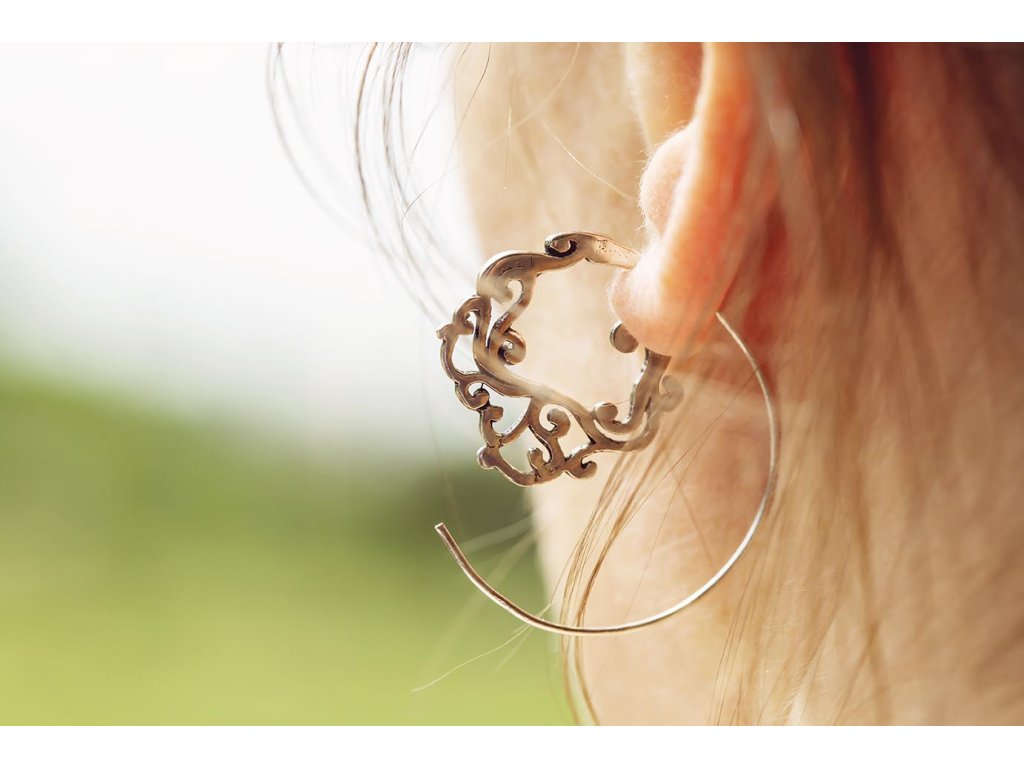 Náušnice vlnobití Náušnice vlnobití jsou z mosazi potažené alpakou. Rozměry cca 3 x 3 cm Hmotnost jedné náušnice cca 2 g