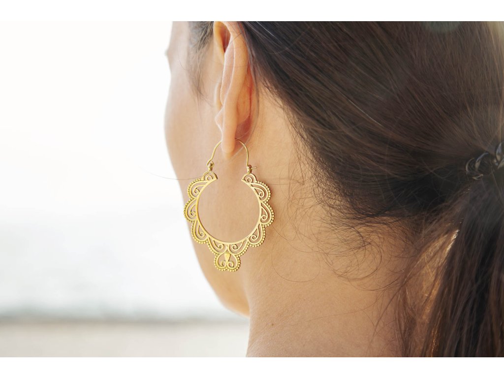 Náušnice vlny Překrásné mosazné zdobené náušnice ve tvaru mořských vln. Délka i se závěsem cca 6 cm Hmotnost jedné náušnice cca 6g
