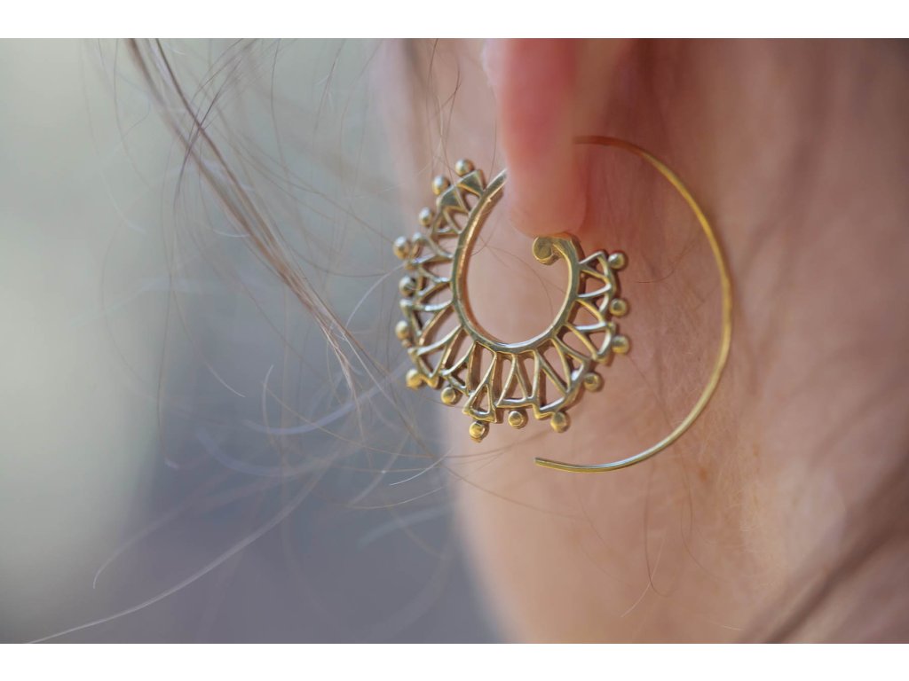 Náušnice zdobená spirála Další náušnice zdobená spirála z oblíbené řady mosazných náušnic. Jsou cenově dostupné a přitom krásné. Průměr cca 3,5 cm Hmotnost jedné náušnice cca 3 gDoplňkové parametry