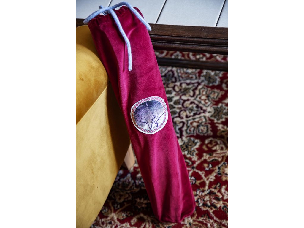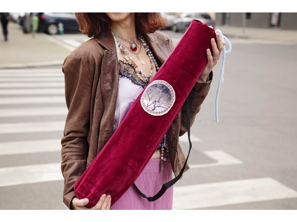 Obal na jógamatku Deer park Milujeme slow fashion a recyklujeme s nadšením vše, co nás inspiruje. Tento obal na jógamatku Deer park je z recyklované látky a je ušitý v Čechách. Zdobí ho ručně našitá autorská mandala "Deer park", která vznikla tepelným transferem na recyklovanou látku. Materiál je vínový samet. Šňůrka v šedivé barvě. Rozměry cca 75 x 21 cmDoplňkové parametry