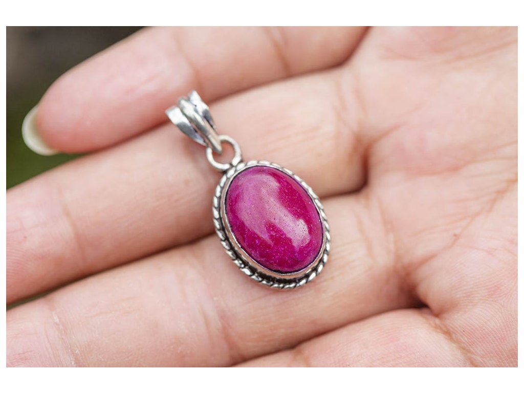 Přívěsek indický rubín Nádherný přívěsek indický rubín. Rubín je vyhledávaný drahokam. Je to lék proti náladovosti, podporuje intuici a sebevyjádření, dodává dobrou náladu. Vládne životodárnou kreativní energií vedoucí k očištění a proměně. Vytváří harmonické spojení mezi tělesnou a duševní láskou, mezi sexualitou a duchovnem. Hmotnost: 6 g Délka i se závěsem: cca 3 cmDoplňkové parametry