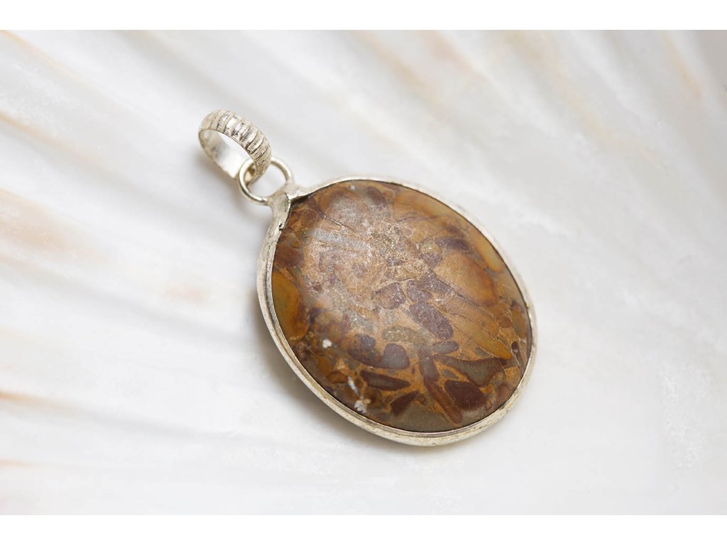 Přívěsek jaspis leopardí Oválný leopardí jaspis zasazený do bílého kovu. Jaspis přináší do života klid, pomáhá ve stresu, uvádí do rovnováhy duševní i tělesnou stránku. Umožňuje dosahování cílů, tím že podporuje pronikavost vhledu na podstatu problému. Zvyšuje organizační schopnosti a schopnost dělat rychlá a správná rozhodnutí. Chrání před negativní energií. Je výborným pomocníkem v pracovním i soukromém životě. Rozměry cca 2,2 x 2,7 cm Hmotnost cca 6 gDoplňkové parametry