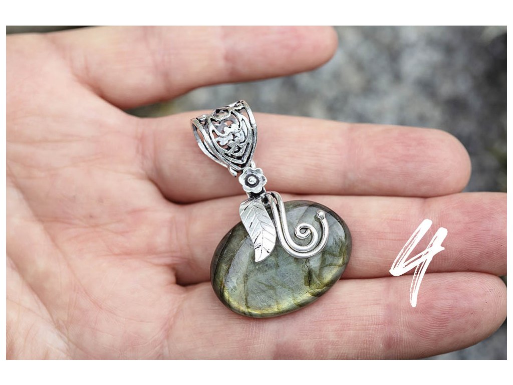 Přívěsek labradorit Krásné přívěsky s tajuplným labradoritem a alpakovým zdobením. Labradorit je vhodný pro bytost, která je připravená ukázat světu své skryté hlubiny. Vynáší na povrch to, co před světem ukrýváme a osvobozuje naši osobnost od starých vzorců a zábran. Odložením zábran se navrací do života spontánnost a radost. Je to také ochranný kámen šamanů a mágů, aby nesešli z cesty při propojování různých dimenzí a světů, přináší světlo, které rozjasňuje tuto cestu. Přívěsků je více druhů. Při objednání napište do poznámky číslo, které je uvedené na fotce přívěsku, který jste vybrali.Doplňkové parametry