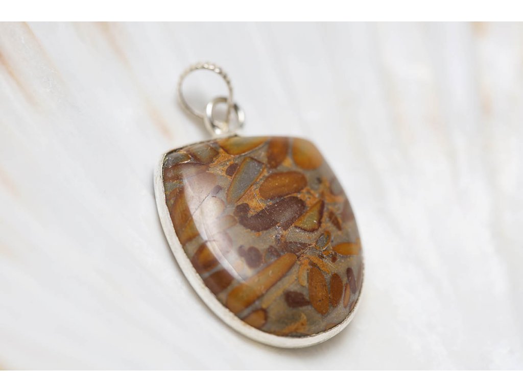 Přívěsek leopardí jaspis Hnědý leopardí jaspis zasazený do bílého kovu. Jaspis přináší do života klid, pomáhá ve stresu, uvádí do rovnováhy duševní i tělesnou stránku. Umožňuje dosahování cílů, tím že podporuje pronikavost vhledu na podstatu problému. Zvyšuje organizační schopnosti a schopnost dělat rychlá a správná rozhodnutí. Chrání před negativní energií. Je výborným pomocníkem v pracovním i soukromém životě. Rozměry cca 2,3 x 2,5 cm Hmotnost cca 8 gDoplňkové parametry