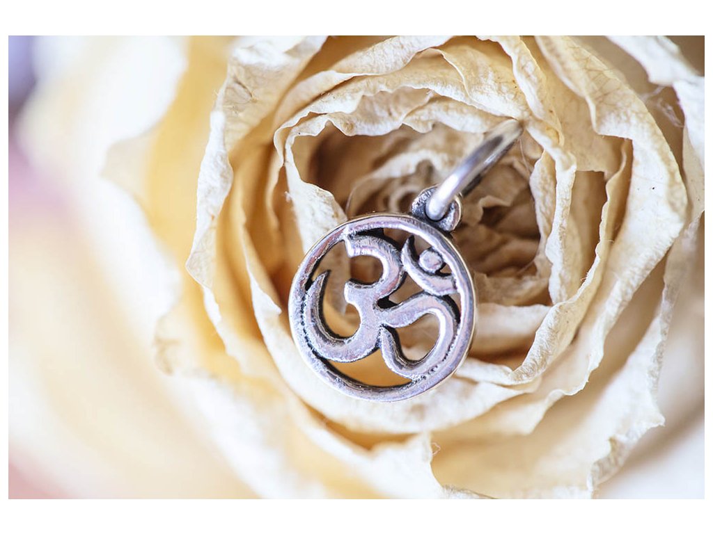 Přívěsek óm Stříbrný drobný přívěsek óm. Óm je prastará mantra, která se často zpívá při jogínských cvičeních. Óm je ale i symbol, který má náboženský význam a hloubku. Je to zvuk stvoření vesmíru i zvuk ticha. Představuje nejvyšší božskou úroveň a cestu l osvícení. Symbol napomáhá ke zklidnění mysli, vytvoření pokojného prostředí a dosažení vyšší úrovně vědomí. Průměr: 8 mm Hmotnost: 0,5 g Materiál: Stříbro Ag 925/1000Doplňkové parametry