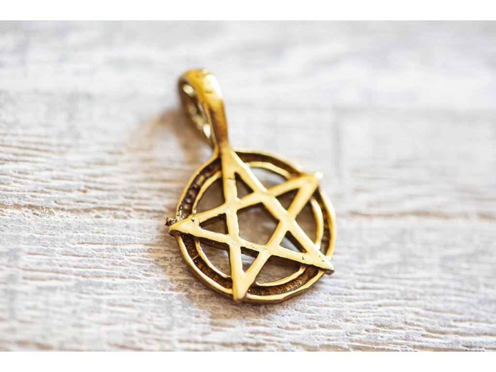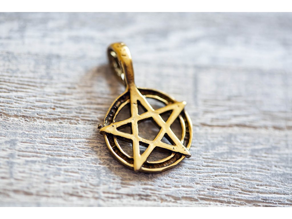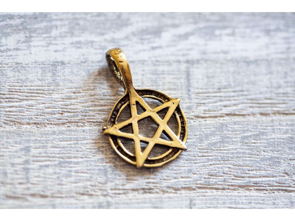 Přívěsek pentagram Mosazný přívěsek ve tvaru prastarého symbolu pentagram. Pentagram symbolizuje ve sém pravém historickém významu světlo Venuše. Symbol pentagramu má ale mnoho interpretací. Mimo jiné vás dokáže do jisté míry ochránit nejen před chaosem, ale i zlým úmyslem, protože jeho prvotní schopností je dát věcem řád, tedy vracet zlo do mezí, které nemá překračovat. Průměr cca 18 mm Hmotnost cca 3gDoplňkové parametry