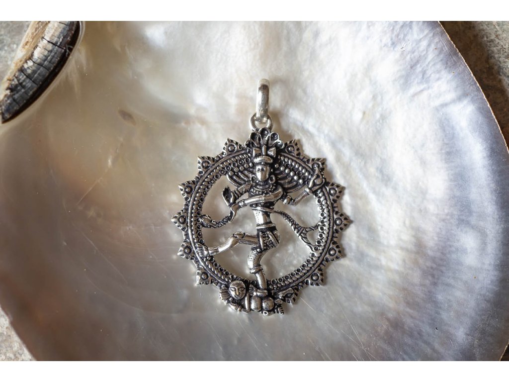 Přívěsek Šiva Nataraja Přívěsek Šiva Nataraja - Šiva král tance je z mosazi potažené alpakou Šiva spojuje mnoho protikladů. Je milosrdný a zničující, meditativní a extatický. Symbolizuje změnu, která je jedinou jistotou. Průměr cca 4 cm Hmotnost cca 10 gDoplňkové parametry