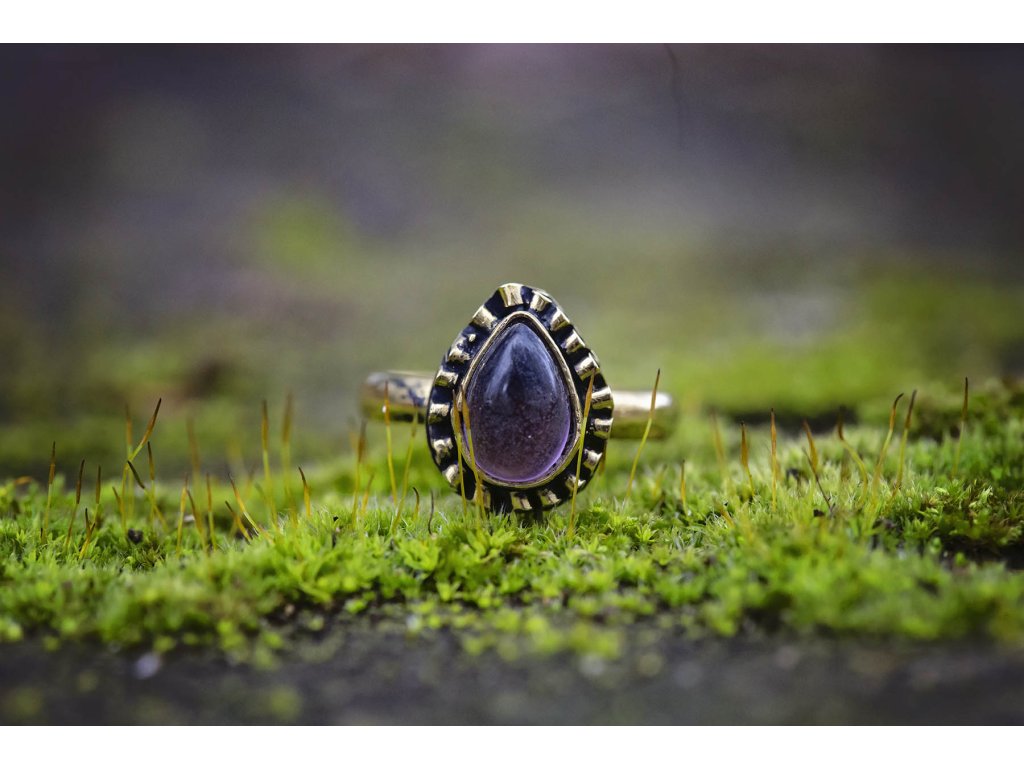 Drahokam: Ametyst, Materiál: Mosaz, Průměr prstenu: 17mm