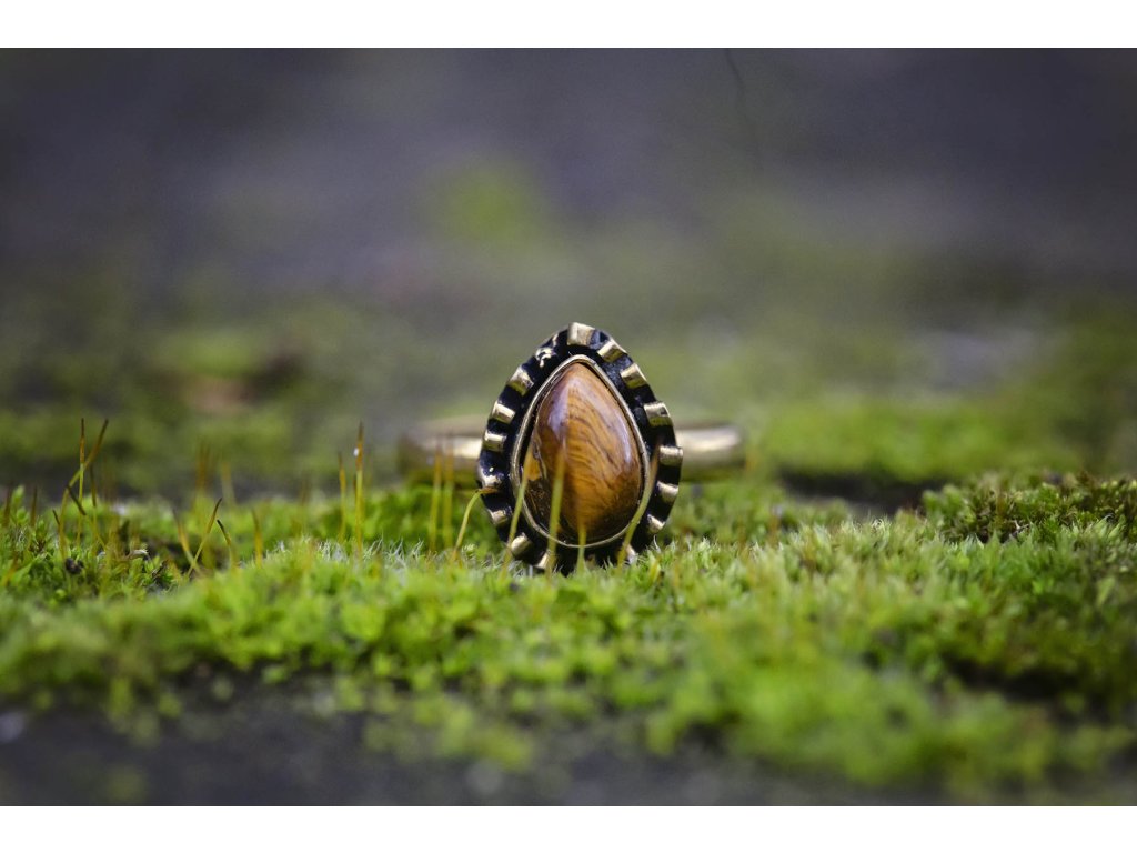Drahokam: Tygří oko, Materiál: Mosaz, Průměr prstenu: 17mm