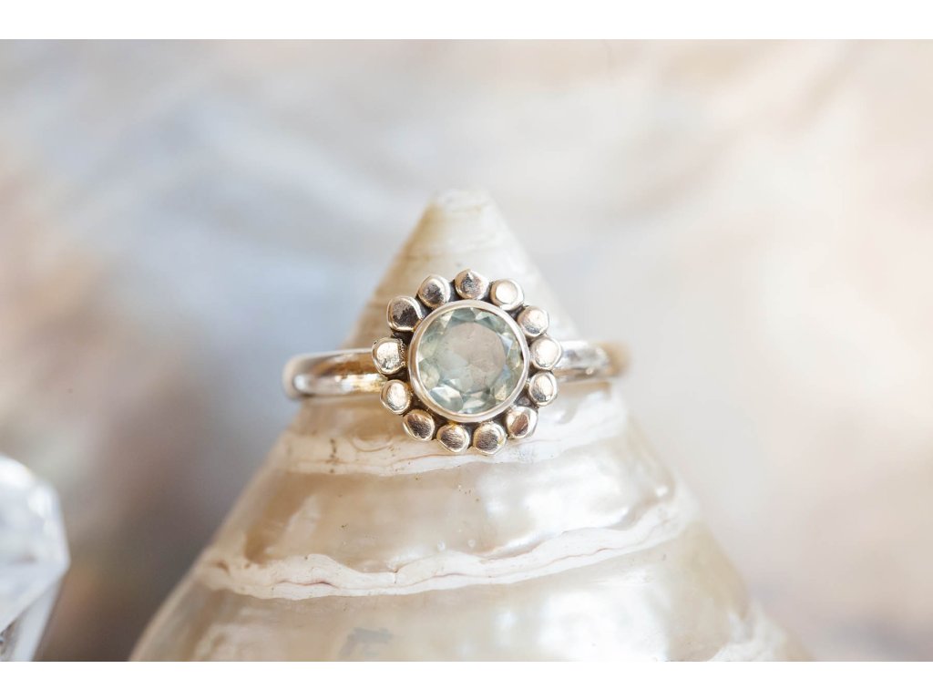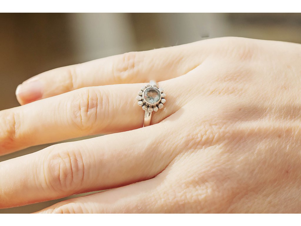 Prsten kytička s topazem Překrásný jemný prsten ve tvaru kytičky se stříbrnými lístky a vybroušeným topazem, který má nevšední blankytnou barvu. Topaz je ochranný kámen proti všem druhům negativity. Mírní strach, vztek a depresi. Zabraňuje náměsíčnosti a nočním můrám. Přináší radost a hojnost. Upevňuje zdraví, zaměřuje energii tam, kde je to třeba, uklidňuje, dobíjí a motivuje. Přináší pravdu a odpuštění, též přízeň osudu zajišťující úspěšné dosažení stanovených cílů. Zlepšuje komunikaci, meditaci, pomáhá s naladěním na vyšší já. Prsten nabízíme v těchto průměrech: 17 mm, 18 mm a 19 mm Průměr kamene cca: 0,5 cm Materiál kov: Stříbro Ag 925/1000Buďte první, kdo napíše příspěvek k této položce.