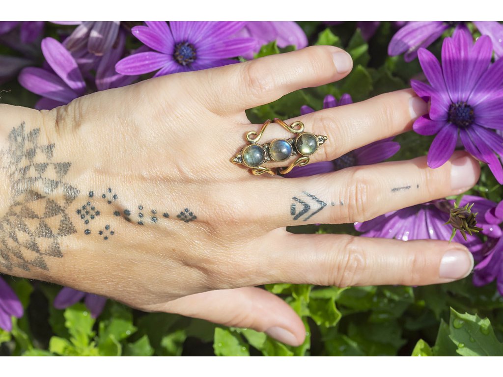 Prsten labradority Překrásný mosazný prsten tři labradority. Labradority mají nádhernou zelenozlatou opalizující barvu. Labradorit je vhodný pro bytost, která je připravená ukázat světu své skryté hlubiny. Vynáší na povrch to, co před světem ukrýváme a osvobozuje naši osobnost od starých vzorců a zábran. Odložením zábran se navrací do života spontánnost a radost. Je to také ochranný kámen šamanů a mágů, aby nesešli z cesty při propojování různých dimenzí a světů, přináší světlo, které rozjasňuje tuto cestu.Buďte první, kdo napíše příspěvek k této položce.