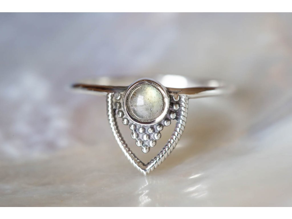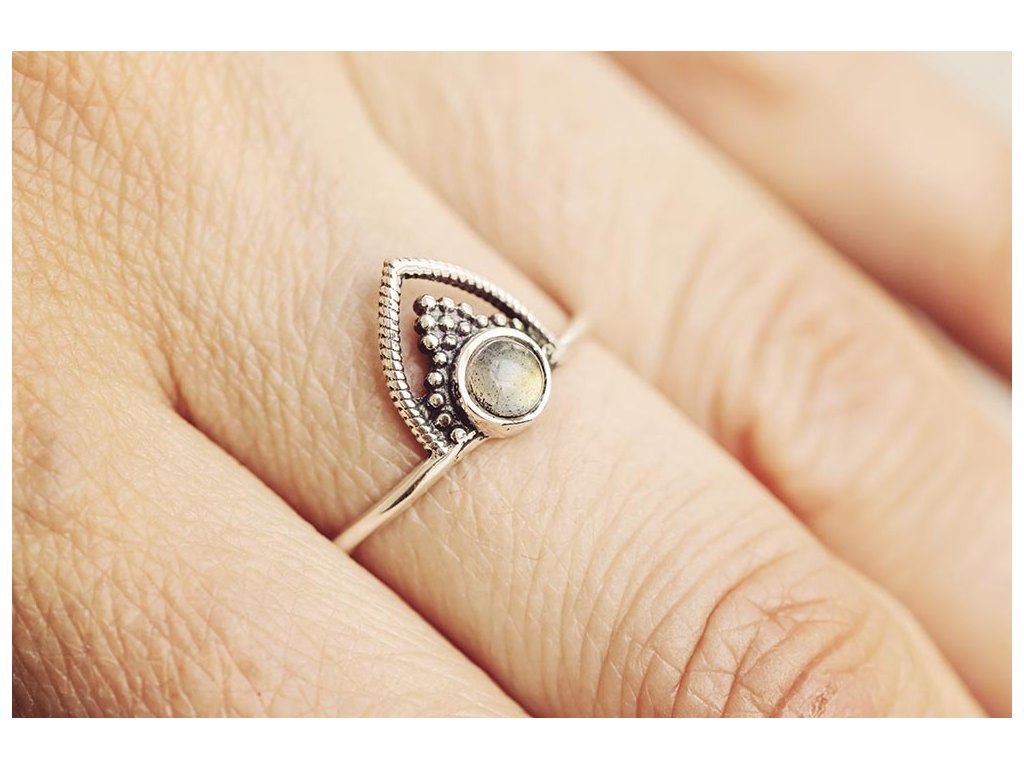 Prsten Orient s labradoritem Krásný stříbrný prsten s labradoritem. Labradorit je vhodný pro bytost, která je připravená ukázat světu své skryté hlubiny. Vynáší na povrch to, co před světem ukrýváme a osvobozuje naši osobnost od starých vzorců a zábran. Odložením zábran se navrací do života spontánnost a radost. Je to také ochranný kámen šamanů a mágů, aby nesešli z cesty při propojování různých dimenzí a světů, přináší světlo, které rozjasňuje tuto cestu. Materiál: Ag 925/1000 Průměr prstenu: 18 mmDoplňkové parametry