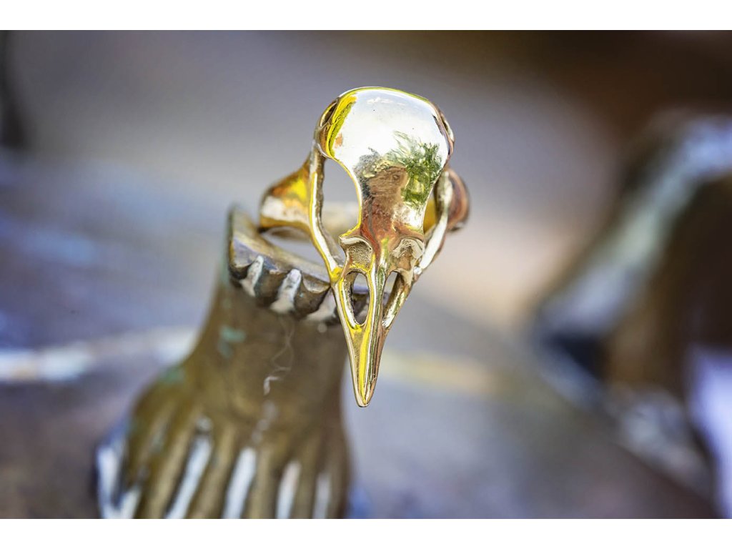 Prsten ptačí lebka Nevšední výrazný mosazný prsten ve tvaru ptačí lebky pro čaroděje a čarodějky.Buďte první, kdo napíše příspěvek k této položce.