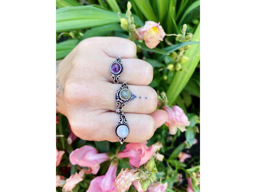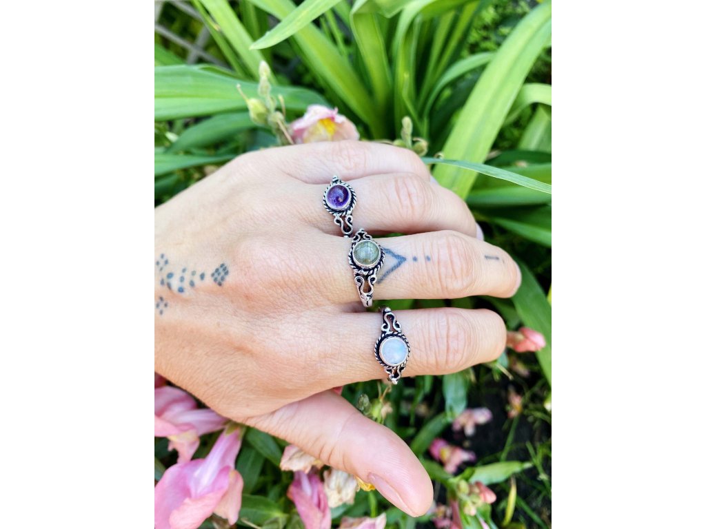 Prsten s drahokamem Překrásný jemný prsten z bílého kovu s drahokamem. Na výběr je fialový ametyst, bílý měsíční kámen a zelenozlatavý labradorit. Ametyst je kamenem čistoty ducha a meditace. Pomáhá nám v sobě objevovat sebeobětování, lásku, pokoru a nezištnost. Těmito vlastnostmi nám otevírá cestu do jiných dimenzí bytí. Je to kámen inspirace, směřuje naše myšlení k tvořivé práci a probouzí v nás intuici. Více o ametystu se dočtete na našem blogu. Měsíční kámen je uchvacující drahokam, který má silné magické účinky. Ochraňuje citlivé povahy a napomáhá vyrovnaným šťastným vztahům. Je považován za drahokam štěstí. Působí pozitivně na intuici, tvořivost a podpoří Vás v nových začátcích. Šperk s měsíčním kamenem by neměl chybět ve šperkovnici žádné ženy. Více o měsíčním kameni se dočtete na našem blogu. Labradorit je vhodný pro bytost, která je připravená ukázat světu své skryté hlubiny. Vynáší na povrch to, co před světem ukrýváme a osvobozuje naši osobnost od starých vzorců a zábran. Odložením zábran se navrací do života spontánnost a radost. Je to také ochranný kámen šamanů a mágů, aby nesešli z cesty při propojování různých dimenzí a světů, přináší světlo, které rozjasňuje tuto cestu.Buďte první, kdo napíše příspěvek k této položce.