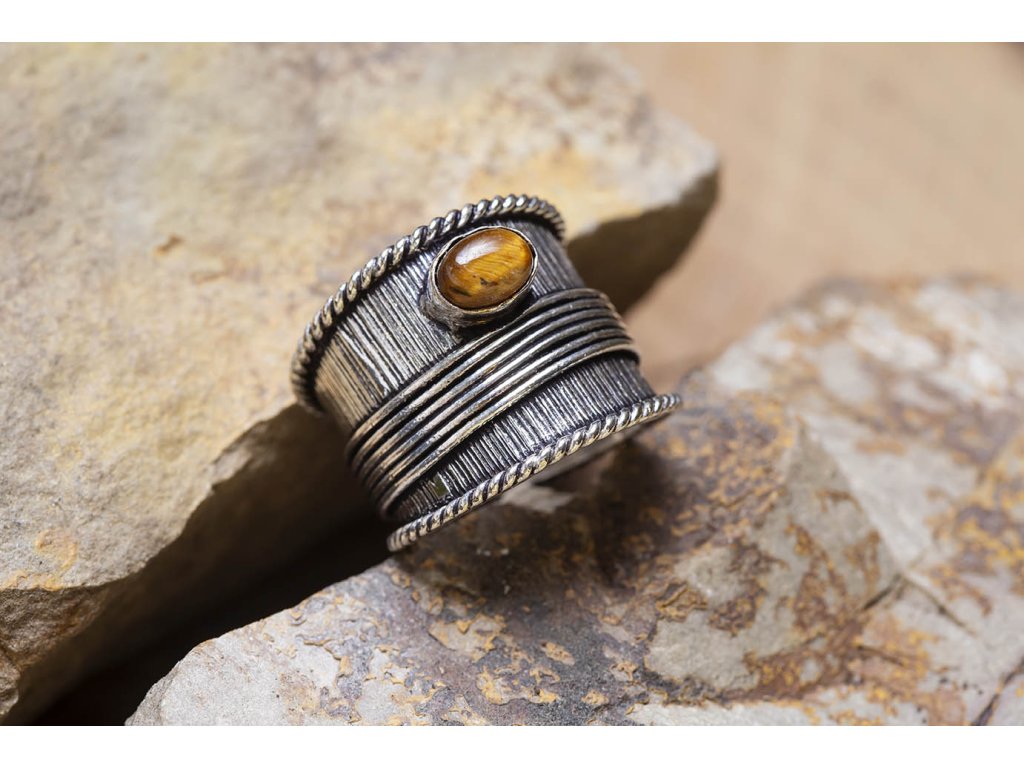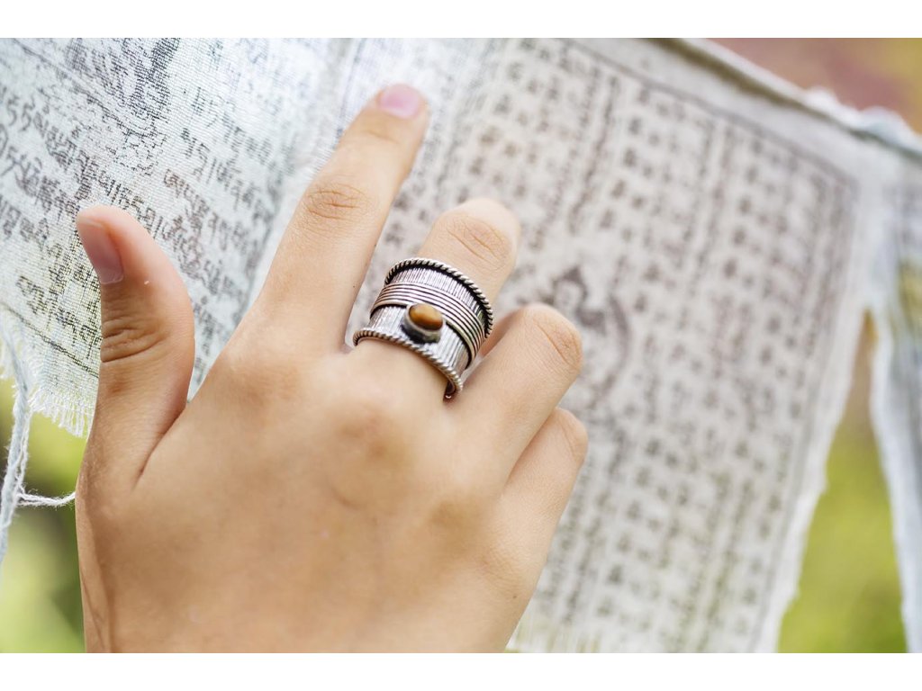 Prsten s drahokamem Výrazný prsten z mosazi potažené alpakou s menším drahokamem. Měsíční kámen je uchvacující drahokam, který má silné magické účinky. Ochraňuje citlivé povahy a napomáhá vyrovnaným šťastným vztahům, je považován za drahokam štěstí. Stejně tak působí na intuici, tvořivost a podpoří Vás v nových začátcích. Šperk s měsíčním kamenem by neměl chybět ve šperkovnici žádné ženy. Více o měsíčním kameni se dočtete na našem blogu. Růženín je kámen lásky. Pomáhá projevovat city, dodává lásku a krásu, podporuje něžnost, mírnost, přátelskost a nesobeckost. Podněcuje citlivost a vnímavost vůči ostatním i sobě samému, podporuje fantazii, inspiraci a tvořivost a trpělivost. Dává sílu k odpuštění, učí sebeúctě a sebelásce. Tygří oko je ochranný kámen, která se používá jako talisman před všemi formami nebezpečí. Propojuje sluneční a zemskou energii a tím pomáhá uzemnit lidi, kteří ztratili spojení s realitou a zároveň podporuje duchovní růst těch materialisticky zaměřených. Je to hřejivý kámen, podporuje to energie v těle a dodává sílu, přitahuje peníze a prosperitu. Pomáhá s odbouráním závislostí na druhých uznáním vlastní hodnoty. Mírní deprese. Lapis lazuli je jedinečný drahokam, který pomáhá a podporuje svého nositele v mnoha ohledech. Navozuje vnitřní klid a mír, podporuje radost, odvahu, lásku, poctivost a kreativitu. Upevňuje mezilidské vztahy a zlepšuje komunikaci. Zvyšuje sebevědomí a podporuje osobní růst. Mírní strach, vztek a agresivitu. Má blahodárný vliv na paměť a úsudek. Dokáže odstraňovat stres a taky být velkým pomocníkem při detoxikaci organismu, například při dietě. Průměr 17 - měsíční kámen Průměr 18 - tygří oko a růženín Průměr 20 - lapis lazuli a tygří okoBuďte první, kdo napíše příspěvek k této položce.