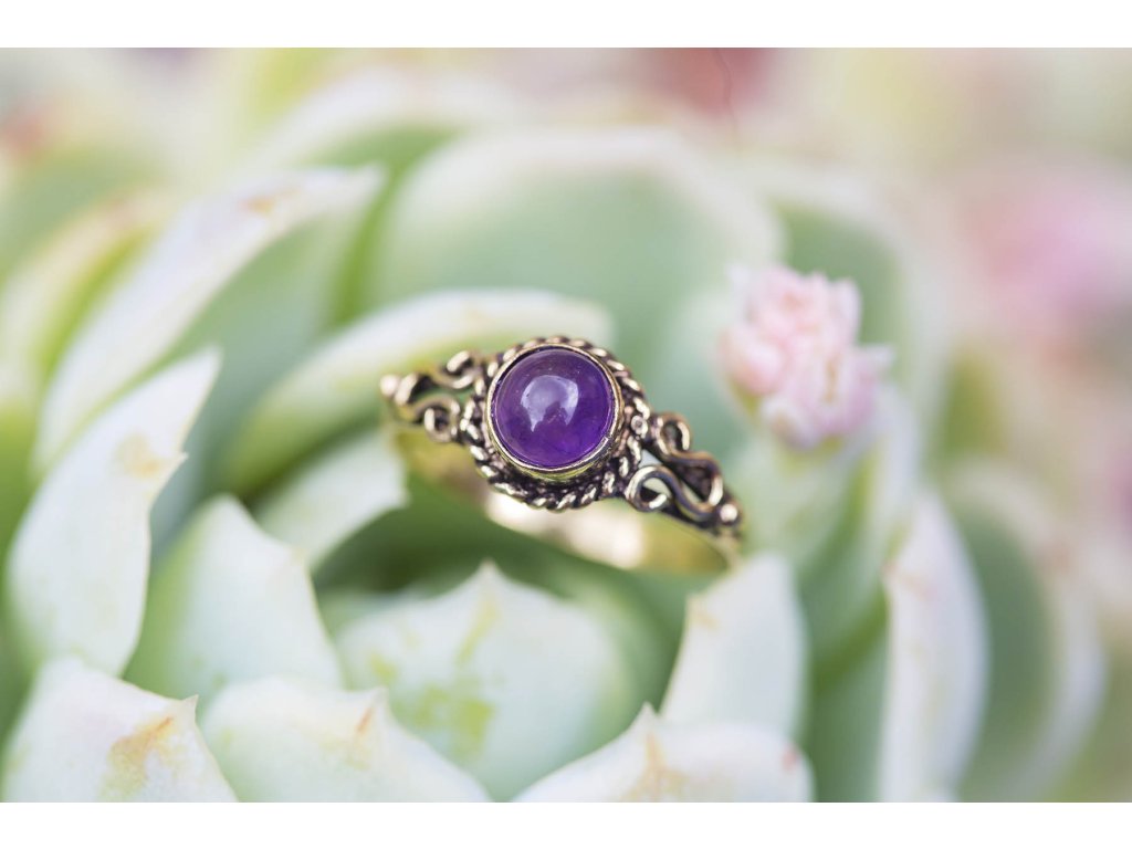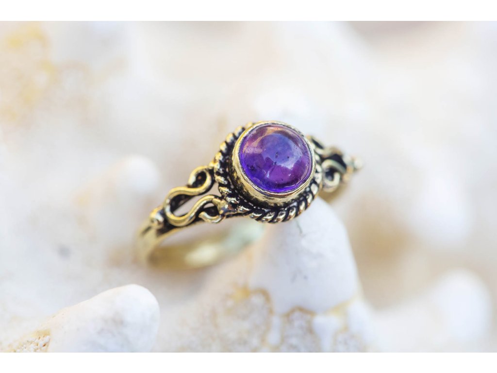 Drahokam: Ametyst, Materiál: Mosaz, Průměr prstenu: 18mm