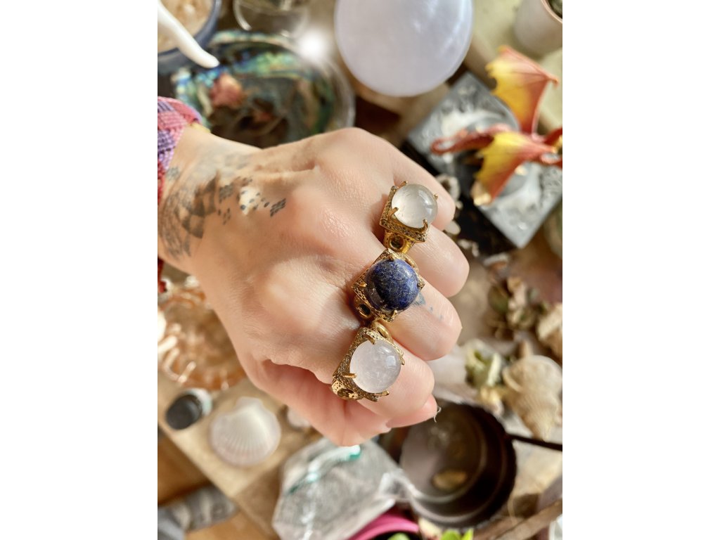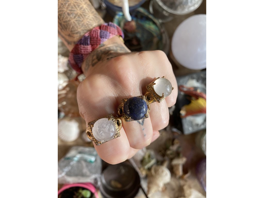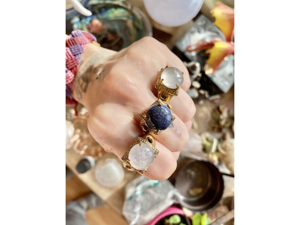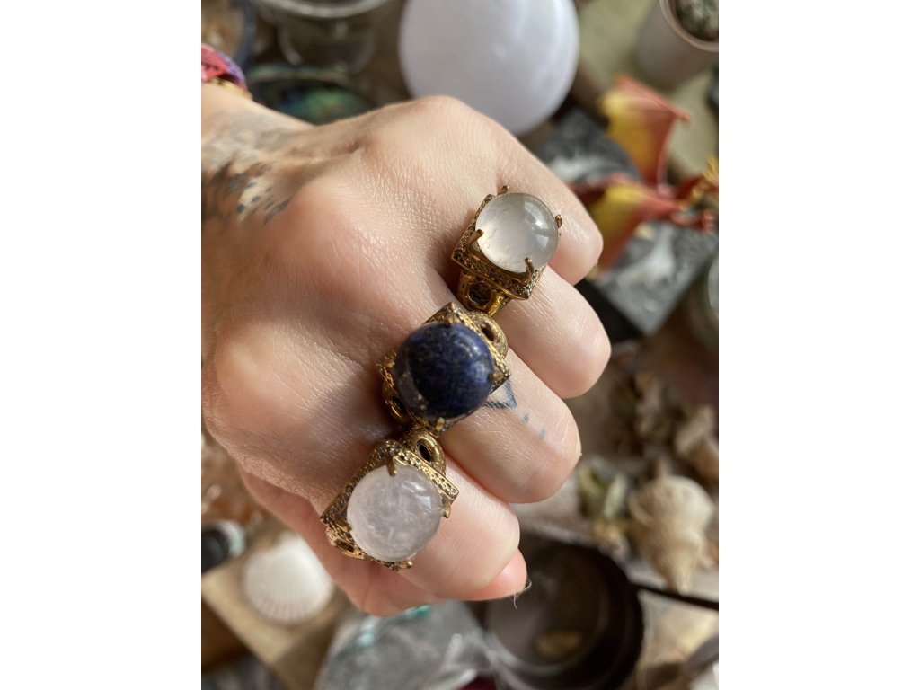 Prsten s drahokamem Výrazný prsten s drahokamem. Na výběr je modrý lapis lazuli, světle růžový růženín a průsvitný křišťál. Prsten s růženínem je ve slevě, kousek kamene je uštíplý - na první pohled je to neviditelná vada. Lapis lazuli je jedinečný drahokam, který pomáhá a podporuje svého nositele v mnoha ohledech. Navozuje vnitřní klid a mír, podporuje radost, odvahu, lásku, poctivost a kreativitu. Upevňuje mezilidské vztahy a zlepšuje komunikaci. Zvyšuje sebevědomí a podporuje osobní růst. Mírní strach, vztek a agresivitu. Má blahodárný vliv na paměť a úsudek. Dokáže odstraňovat stres a taky být velkým pomocníkem při detoxikaci organismu, například při dietě. Růženín je kámen lásky. Pomáhá projevovat city, dodává lásku a krásu, podporuje něžnost, mírnost, přátelskost a nesobeckost. Podněcuje citlivost a vnímavost vůči ostatním i sobě samému, podporuje fantazii, inspiraci a tvořivost a trpělivost. Dává sílu k odpuštění, učí sebeúctě a sebelásce. Křišťál je jedinečný kámen, který uvádí energii svého nositele do harmonie, zesiluje jí a tím povzbuzuje psychiku, jasnozřivost a samostatnost a sebezdokonalení. Ochraňuje před zlými a negativními silami. Harmonizuje, čistí a chrání auru a tím zajišťuje klidný spánek. Je vhodný pro meditace a magické účely. Průměr prstenů je cca 18 mmBuďte první, kdo napíše příspěvek k této položce.