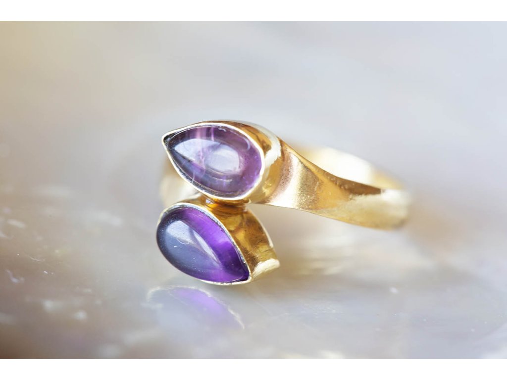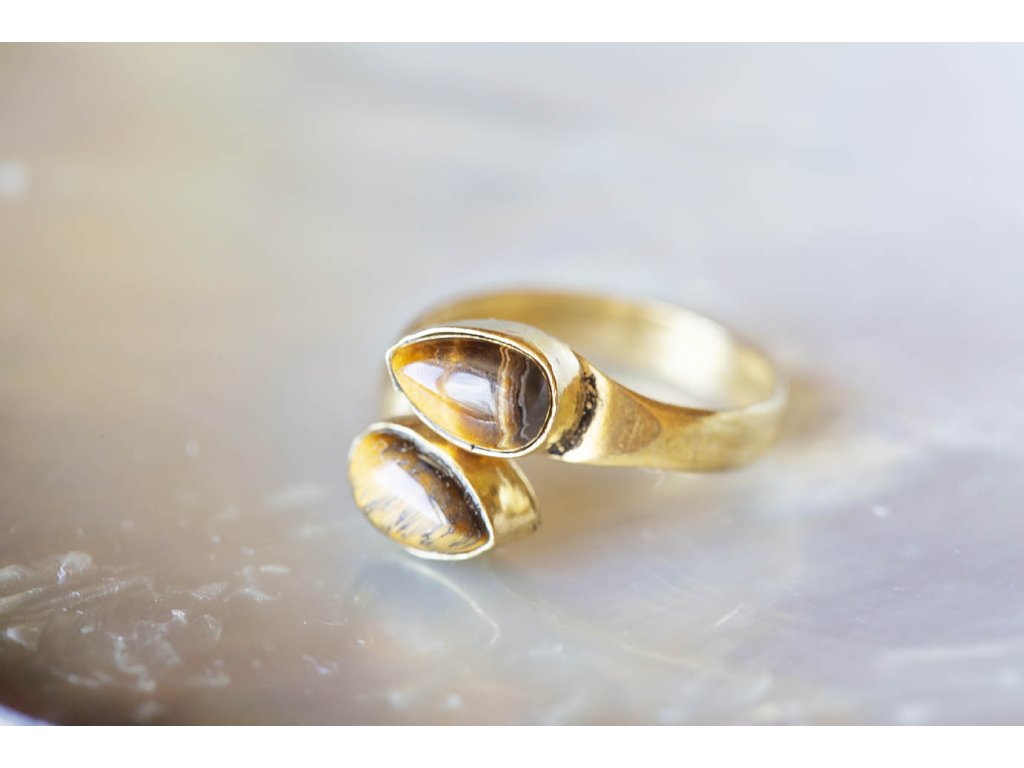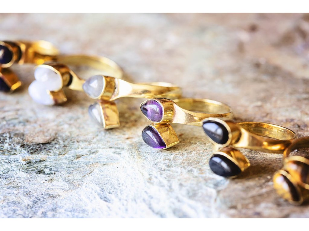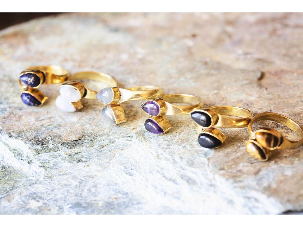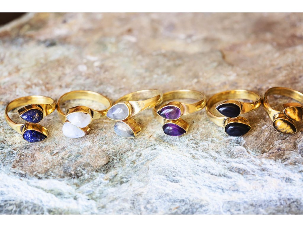 Prsten s drahokamy Nevšední mosazný prsten se dvěma drahokamy. Základní průměr je cca 17 mm, prstýnek jde o trochu zmenšit či zvětšit. Ametyst je kamenem čistoty ducha a meditace. Pomáhá nám v sobě objevovat sebeobětování, lásku, pokoru a nezištnost. Těmito vlastnostmi nám otevírá cestu do jiných dimenzí bytí. Je to kámen inspirace, směřuje naše myšlení k tvořivé práci a probouzí v nás intuici. Černý onyx je ochranný kámen, který odráží negativitu vědomě namířenou proti vám. Chrání život, dodává sílu, pomáhá v těžkých obdobích, při mimořádném fyzickém a citovém vypětí. Zaměřuje energii jedním směrem, přináší ráznost a vytrvalost, dovoluje svému nositeli stát se pánem svého osudu. Poskytuje poučení z minulosti, zvyšuje sebedůvěru a sebekontrolu, léčí stará traumata ovlivňující současný život a snižuje strach a obavy. Udržuje v těle rovnováhu energií jin a jang. Lapis lazuli je jedinečný drahokam, který pomáhá a podporuje svého nositele v mnoha ohledech. Navozuje vnitřní klid a mír, podporuje radost, odvahu, lásku, poctivost a kreativitu. Upevňuje mezilidské vztahy a zlepšuje komunikaci. Zvyšuje sebevědomí a podporuje osobní růst. Mírní strach, vztek a agresivitu. Má blahodárný vliv na paměť a úsudek. Dokáže odstraňovat stres a taky být velkým pomocníkem při detoxikaci organismu, například při dietě. Měsíční kámen je uchvacující drahokam, který má silné magické účinky. Ochraňuje citlivé povahy a napomáhá vyrovnaným šťastným vztahům. Je považován za drahokam štěstí. Působí pozitivně na intuici, tvořivost a podpoří Vás v nových začátcích. Šperk s měsíčním kamenem by neměl chybět ve šperkovnici žádné ženy. Více o měsíčním kameni se dočtete na našem blogu. Tygří oko je ochranný kámen, která se používá jako talisman před všemi formami nebezpečí. Propojuje sluneční a zemskou energii a tím pomáhá uzemnit lidi, kteří ztratili spojení s realitou a zároveň podporuje duchovní růst těch materialisticky zaměřených. Je to hřejivý kámen, podporuje to energie v těle a dodává sílu, přitahuje peníze a prosperitu. Pomáhá s odbouráním závislostí na druhých uznáním vlastní hodnoty. Mírní deprese.Buďte první, kdo napíše příspěvek k této položce.