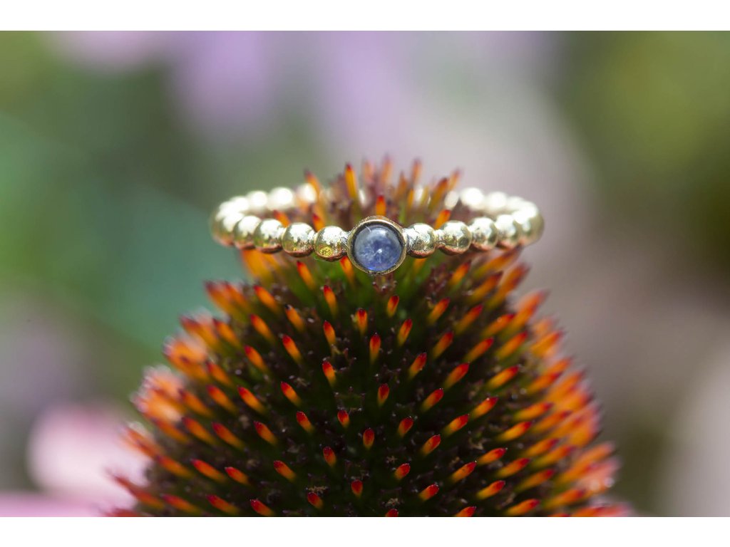 Prsten s labradoritem Jemný prsten s malým labradoritem s modrými záblesky je vytvořen z mosazných kuliček, které vytvářejí dojem zlatých kapek rosy. Labradorit je vhodný pro bytost, která je připravená ukázat světu své skryté hlubiny. Vynáší na povrch to, co před světem ukrýváme a osvobozuje naši osobnost od starých vzorců a zábran. Odložením zábran se navrací do života spontánnost a radost. Je to také ochranný kámen šamanů a mágů, aby nesešli z cesty při propojování různých dimenzí a světů, přináší světlo, které rozjasňuje tuto cestu.Buďte první, kdo napíše příspěvek k této položce.