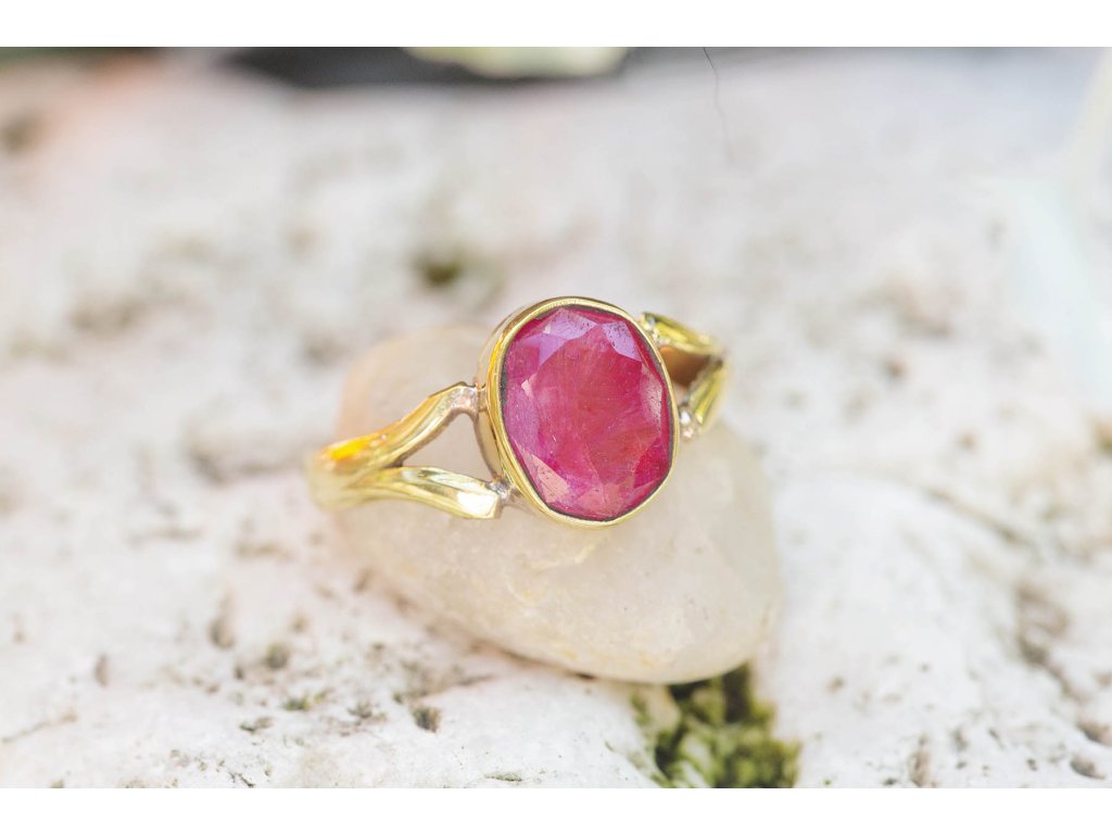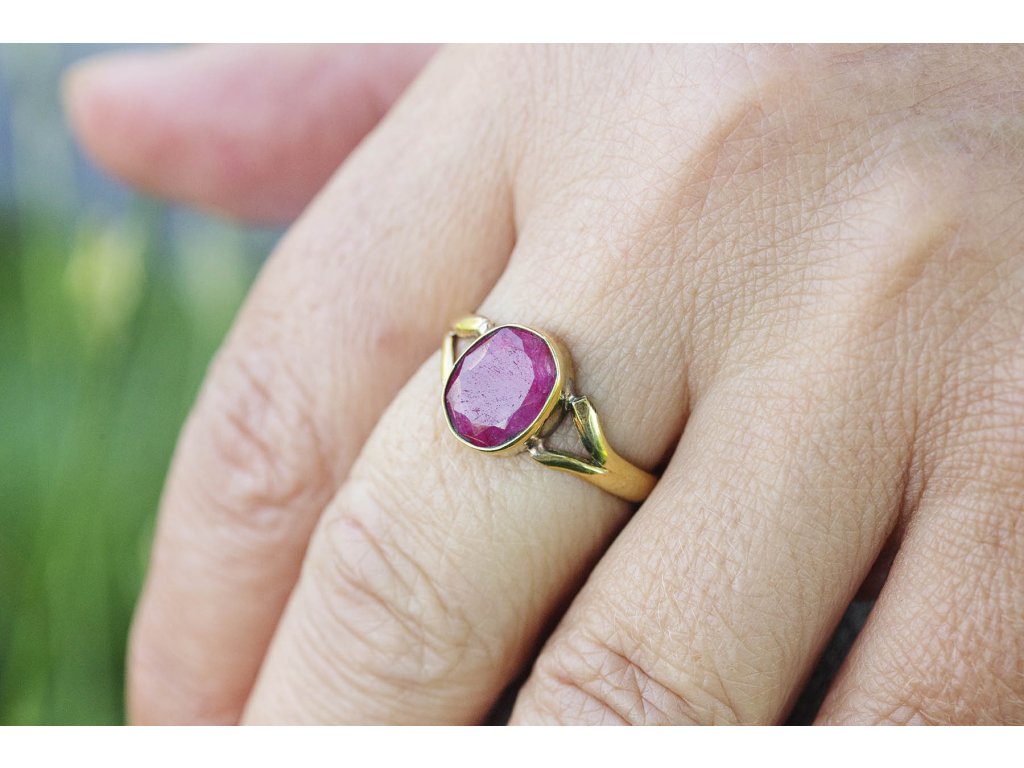 Prsten s rubínem Překrásný mosazný prsten s oválným fasetovaným indickým rubínem. Rubín je vyhledávaný drahokam. Je to lék proti náladovosti, podporuje intuici a sebevyjádření, dodává dobrou náladu. Vládne životodárnou kreativní energií vedoucí k očištění a proměně. Vytváří harmonické spojení mezi tělesnou a duševní láskou, mezi sexualitou a duchovnem. Průměr prstenu cca 19 mmDoplňkové parametry