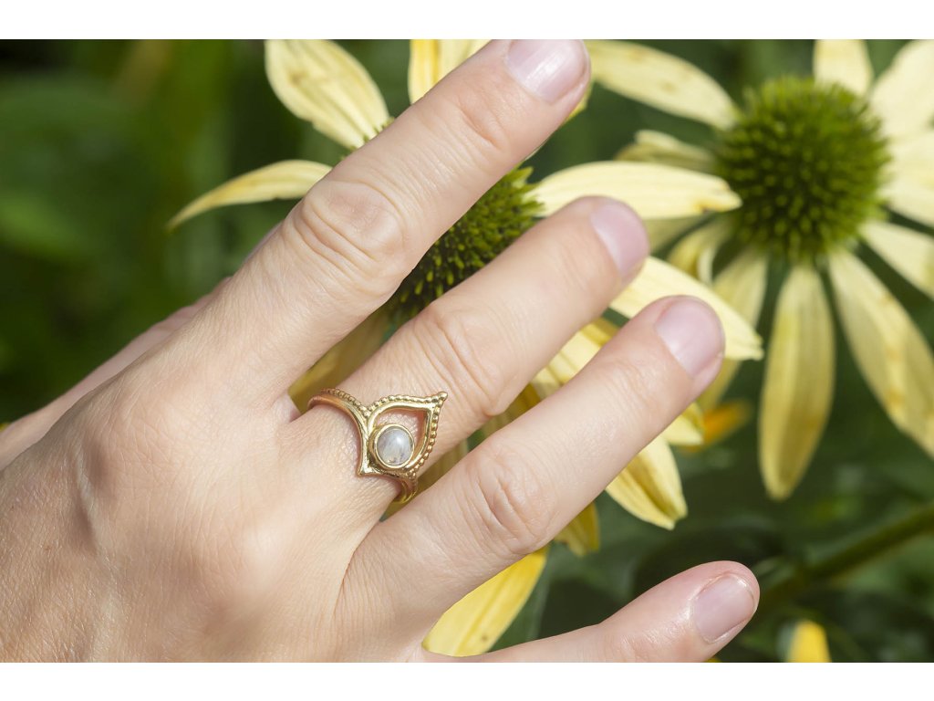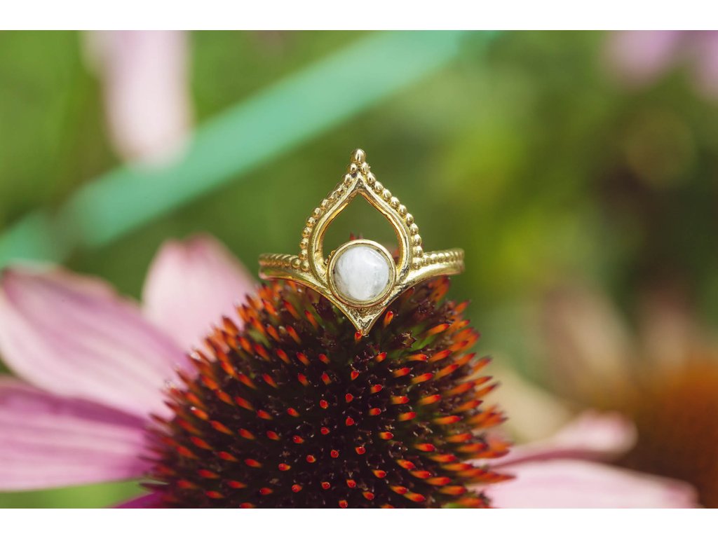 Prsten zdobená špička s měsíčním kamenem Intuice, tvořivost a šťastné vztahy - s tím vám může napomoci tento mosazný prsten s měsíčním kamenem. Měsíční kámen je uchvacující drahokam, který má silné magické účinky. Ochraňuje citlivé povahy a napomáhá vyrovnaným šťastným vztahům. Je považován za drahokam štěstí. Působí pozitivně na intuici, tvořivost a podpoří Vás v nových začátcích. Šperk s měsíčním kamenem by neměl chybět ve šperkovnici žádné ženy. Více o měsíčním kameni se dočtete na našem blogu.Buďte první, kdo napíše příspěvek k této položce.