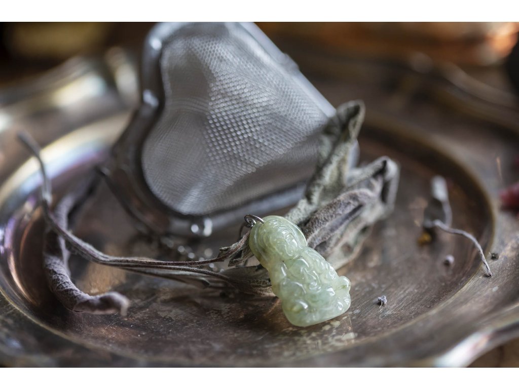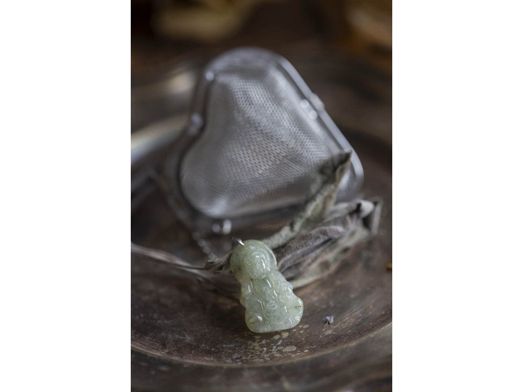 Sítko na čaj Budha Milujete popíjet rozličné bylinkové čaje? Takový šálek lahodného kouzelného nápoje z bohatství matičky přírody je hotová meditace. Naše sítko na čaj Budha s překrásným kouskem zeleného jadeitu, na kterém je reliéfní řezba budhy, tento váš oblíbený rituál ještě umocní a dodá mu uzemňující a vtělující vibraci kamene a ochranného talismanu. Tento originální, jediný ručně vyrobený kousek je také překrásným dárkem pro každou příležitost. लोकाः समस्ताः सुखिनो भवन्तु (kéž jsou všechny bytosti šťastny) Jadeit je ochranný kámen, jenž vnáší do života harmonii. Je symbolem klidu a míru. Přitahuje štěstí, přátelství a peníze. Chrání nás před neštěstím a nehodami. Uklidňuje mysli a pozvedá moudrost ducha. Je skvělý při obchodních jednáních. Podporuje kouzlo osobnosti, empatii, neúnavnost a usnadňuje mezilidskou komunikaci. Stimuluje k práci, podporuje realizaci nápadů, sebevědomí, sebejistotu, sebedůvěru a samostatnost. Na cestách chrání před nebezpečím a nemocemi. Prodlužuje život. Sítko je nerezové ve tvaru srdce. V nejširším místě má cca 5 cm.Doplňkové parametry
