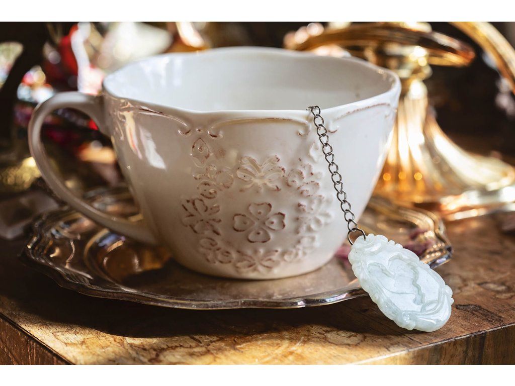Sítko na čaj Kohout Milujete popíjet rozličné bylinkové čaje? Takový šálek lahodného kouzelného nápoje z bohatství matičky přírody je hotová meditace. Naše sítko na čaj Kohout s překrásným kouskem zelenobílého jadeitu, na kterém je vyřezaný kohout, tento váš oblíbený rituál ještě umocní a dodá mu uzemňující a vtělující vibraci kamene a ochranného talismanu. Tento originální, jediný ručně vyrobený kousek je také překrásným dárkem pro každou příležitost. लोकाः समस्ताः सुखिनो भवन्तु (kéž jsou všechny bytosti šťastny) Jadeit je ochranný kámen, jenž vnáší do života harmonii. Je symbolem klidu a míru. Přitahuje štěstí, přátelství a peníze. Chrání nás před neštěstím a nehodami. Uklidňuje mysli a pozvedá moudrost ducha. Je skvělý při obchodních jednáních. Podporuje kouzlo osobnosti, empatii, neúnavnost a usnadňuje mezilidskou komunikaci. Stimuluje k práci, podporuje realizaci nápadů, sebevědomí, sebejistotu, sebedůvěru a samostatnost. Na cestách chrání před nebezpečím a nemocemi. Prodlužuje život. Sítko je nerezové. Výška cca 3,5 cm, Průměr cca 3,5 cm.Doplňkové parametry