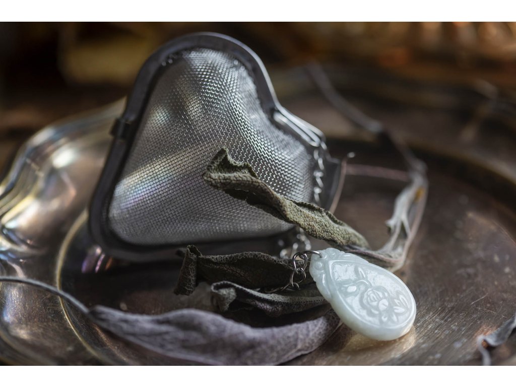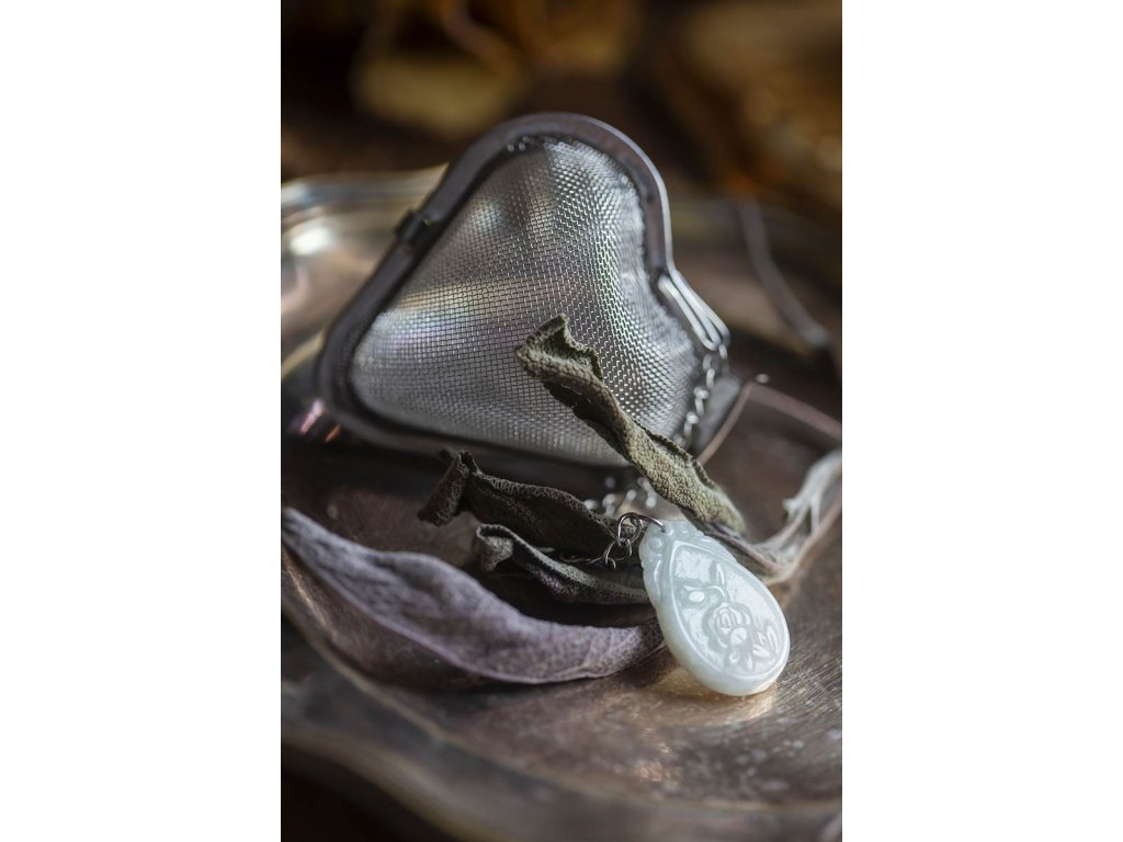 Sítko na čaj Růže Milujete popíjet rozličné bylinkové čaje? Takový šálek lahodného kouzelného nápoje z bohatství matičky přírody je hotová meditace. Naše sítko na čaj Růže s překrásným kouskem zelenobílého jadeitu, na kterém je vyřezaná růže, tento váš oblíbený rituál ještě umocní a dodá mu uzemňující a vtělující vibraci kamene. Tento originální, jediný ručně vyrobený kousek je také překrásným dárkem pro každou příležitost. लोकाः समस्ताः सुखिनो भवन्तु (kéž jsou všechny bytosti šťastny) Jadeit je ochranný kámen, jenž vnáší do života harmonii. Je symbolem klidu a míru. Přitahuje štěstí, přátelství a peníze. Chrání nás před neštěstím a nehodami. Uklidňuje mysli a pozvedá moudrost ducha. Je skvělý při obchodních jednáních. Podporuje kouzlo osobnosti, empatii, neúnavnost a usnadňuje mezilidskou komunikaci. Stimuluje k práci, podporuje realizaci nápadů, sebevědomí, sebejistotu, sebedůvěru a samostatnost. Na cestách chrání před nebezpečím a nemocemi. Prodlužuje život. Sítko je nerezové ve tvaru srdíčka. V nejširším místě má cca 5,5 cm.Doplňkové parametry