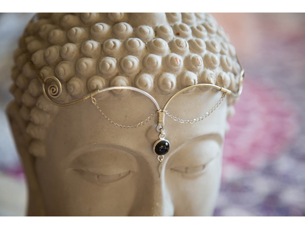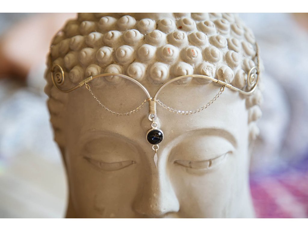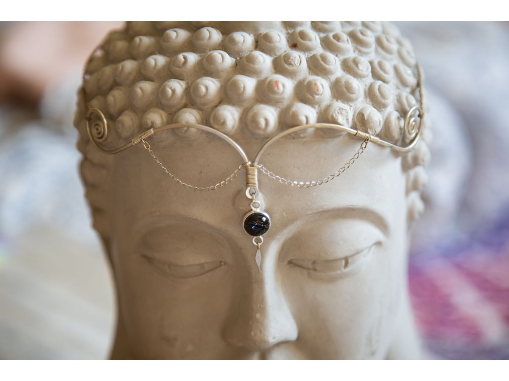 Tiára s obsidiánem Krásná alpaková tiára s macramé šňůrkou, nerezovým řetízkem a obsidiánem. Síla obsidiánu v oblasti třetího oka dělá z tohoto šperku jedinečnou pomůcku pro magické rituály. Další překrásné magické tiáry najdete zde. Obsidián působí hlavně na psychiku, dopomáhá rozvíjet fantazii, dodává sebedůvěru. Ochraňuje před špatnými vlivy a aktivuje logické myšlení. Je to magický kámen užívaný k rituálním obřadům. Obvod je nastavitelný.Doplňkové parametry