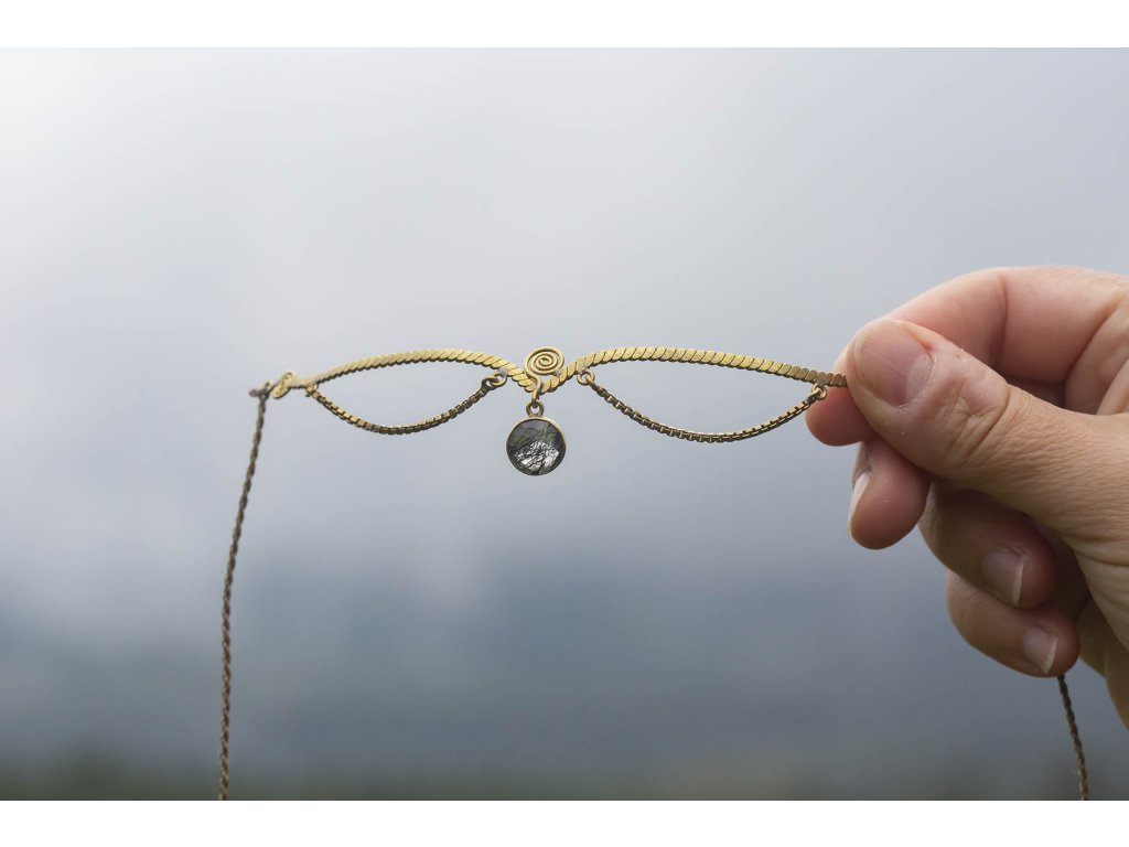 Tiára s rutilem Překrásná mosazná tiára s macramé šňůrkou a fasetovaným rutilem zvaným též Venušiny vlasy. Další překrásné magické tiáry najdete zde. Rutil je křišťál s inkluzemi oxidu titanu. Zahání pocity beznaděje, strachu, ohrožení a nejistoty, které můžou vést až k nemocem psychického a fyzického rázu. Tento krystal má opravdu velikou energii. Pomáhá odstraňovat sexuální problémy pramenící ze studu či nejistoty. Obvod je nastavitelný.Doplňkové parametry